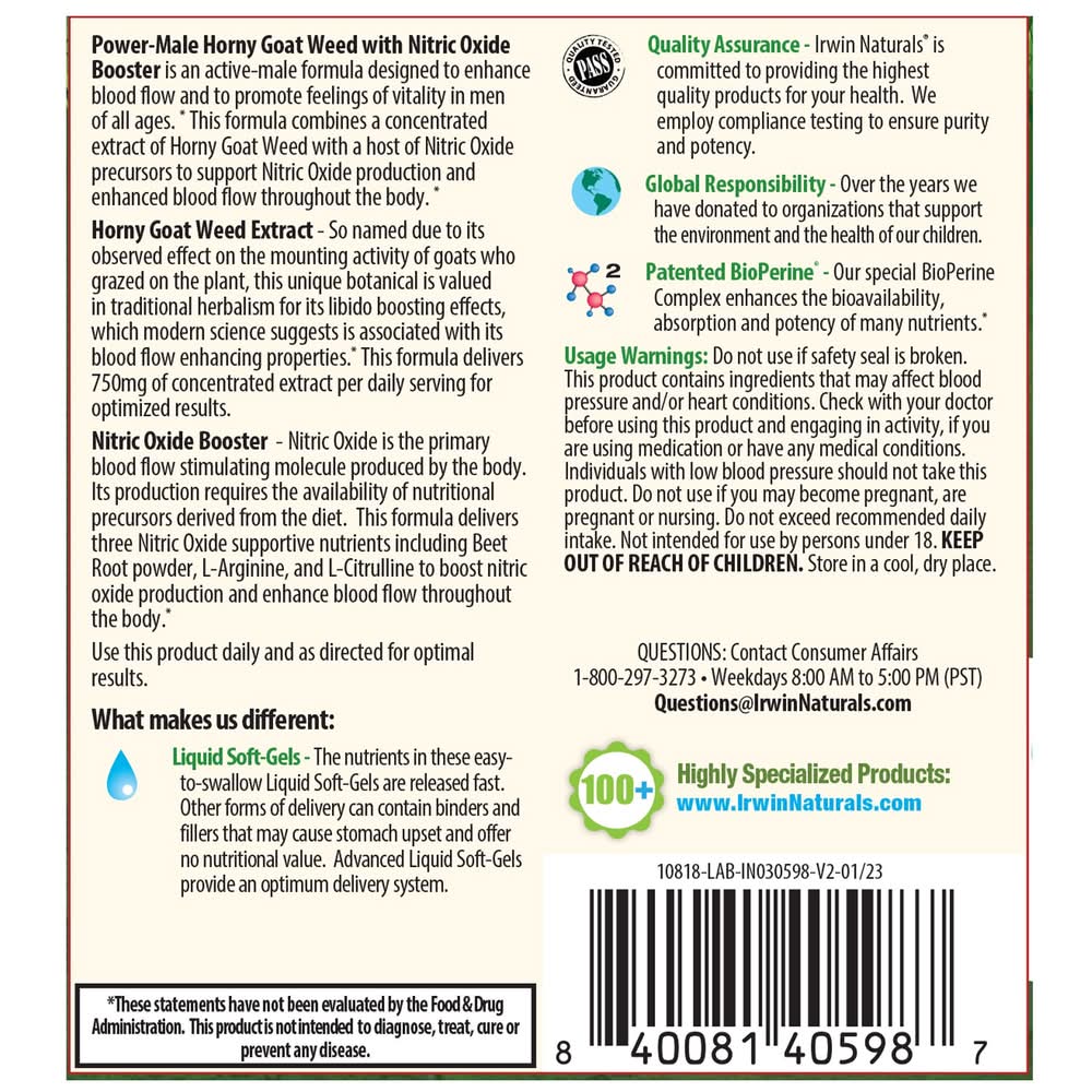 Irwin Naturals Power-Male Horny Goat Weed With Nitric Oxide Booster Soft-Gels (60 ct)