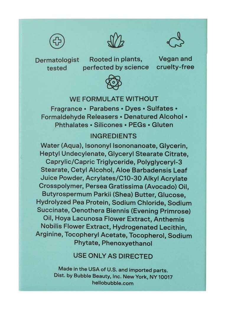 Calm, cool, collected, and mostly facially hydrated. This soothing and ultra-hydrating formula restores moisture to leave skin feeling soft, calm, and protected. Best for: Dry skin. Everyone's skin is different, but if you have dry skin, it might feel tight and itchy. You may have some peeling, flaking or scaling that can look red or gray and ashy Why you'll love it: -Aloe Leaf Juice is a plant-based antioxidant that helps calm, soothe and moisturize skin -Vitamin E is a potent antioxidant that helps fight off free radicals, protect against environmental stressors, and restore skin cell health -Avocado Oil is a lightweight antioxidant oil that helps nourish skin and reduce redness. Its naturally high content of vitamins and essential fatty acids simultaneously soften and moisturize -Blue Light Protection is powered by superfood proteins, this is a science-backed combination of ingredients that prepares, protects and repairs the skin from solar and artificial blue light-induced damage Fun Facts: -For normal to dry skin -Free of denatured alcohols, parabens, artificial color & added fragrance materials -Cruelty-free and vegan
