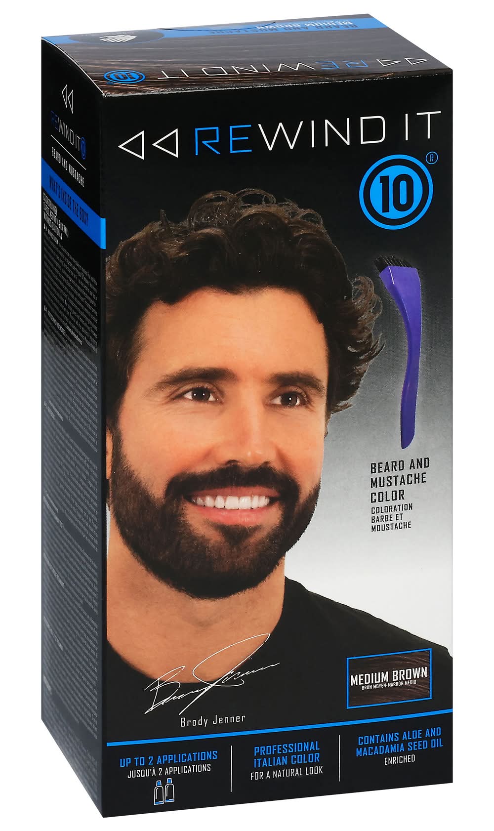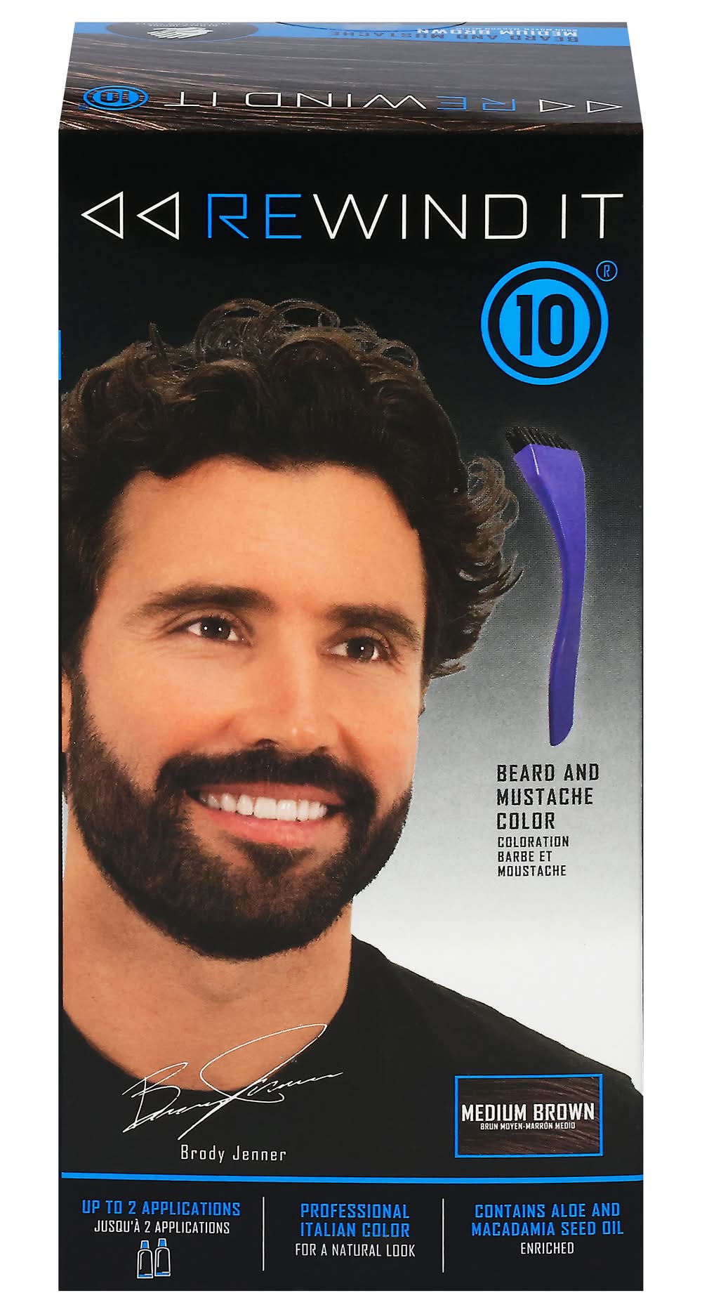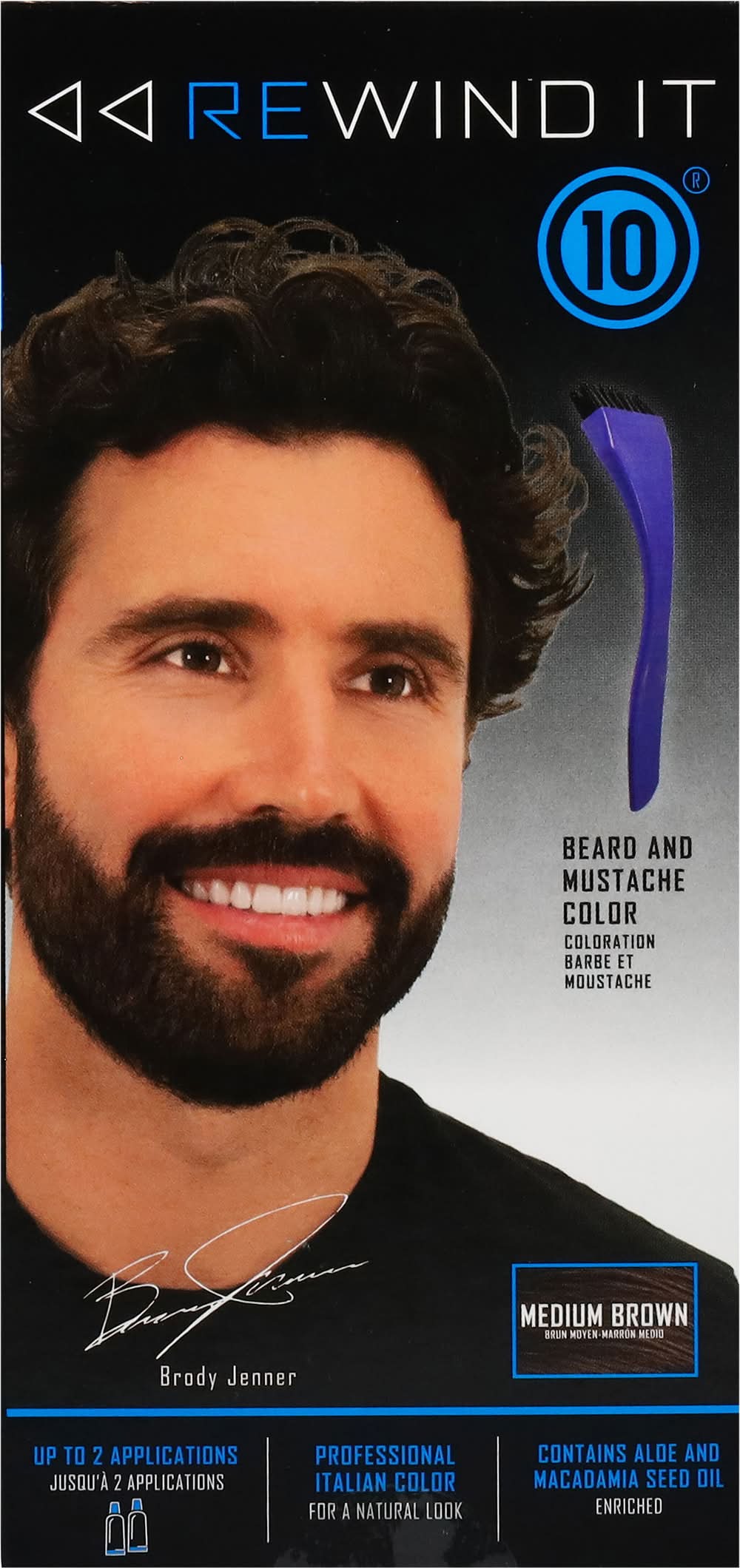 Rewind It 10 Beard and Mustache Color, Medium Brown (0.49 oz)