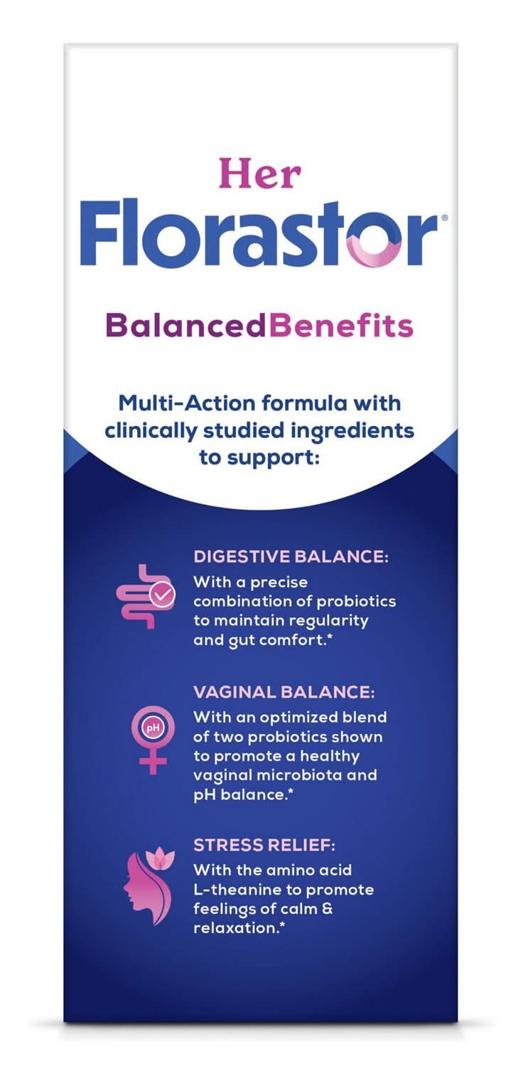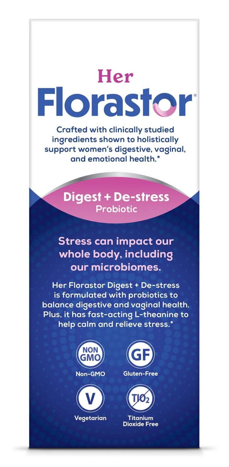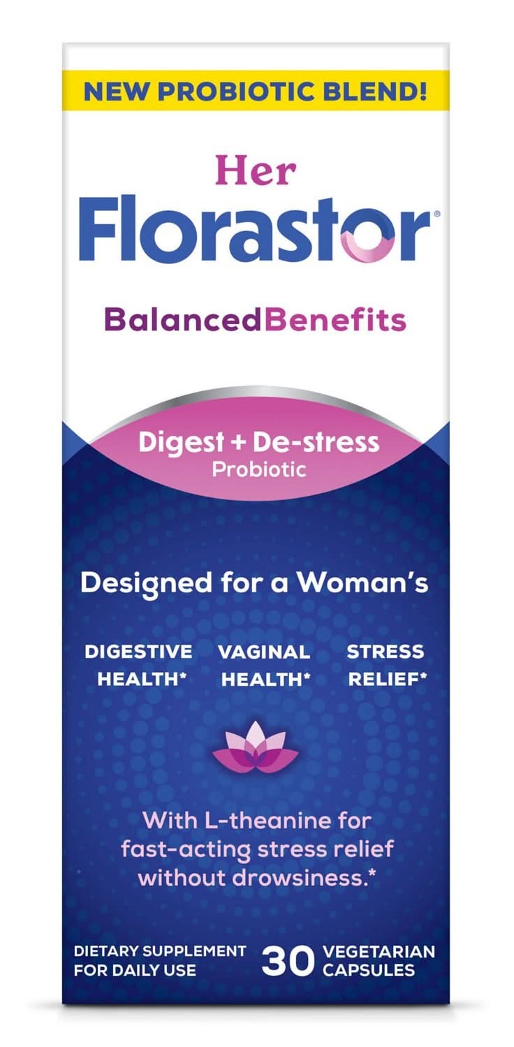 Florastor Her Digest + De-Stress Probiotic Vegetarian Capsules, Women (30 ct)
