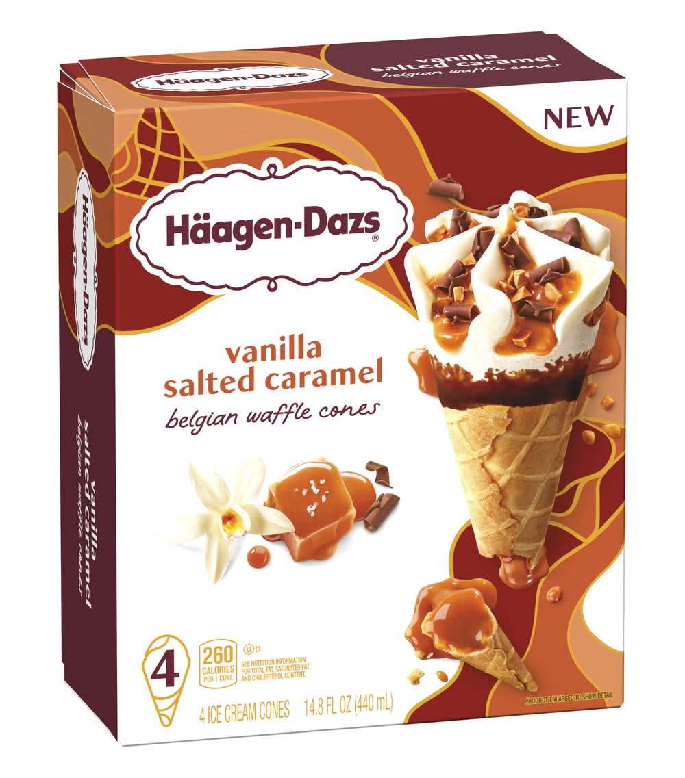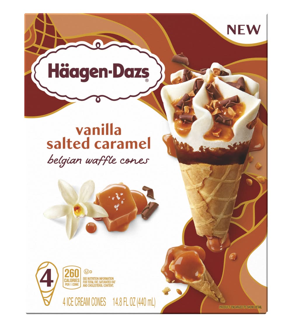 Häagen-Dazs Belgian Waffle Ice Cream Cones, Vanilla-Salted Caramel (3.7 fl oz, 4 ct)