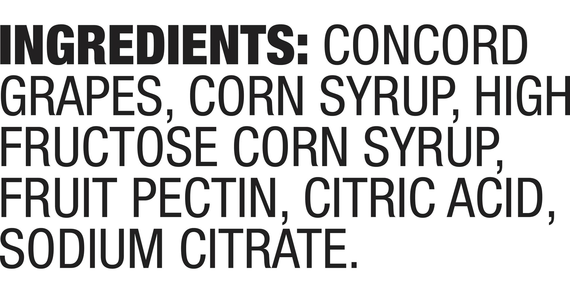 Ingredients: CONCORD GRAPES, CORN SYRUP, HIGH FRUCTOSE CORN SYRUP, FRUIT PECTIN, CITRIC ACID, SODIUM CITRATE