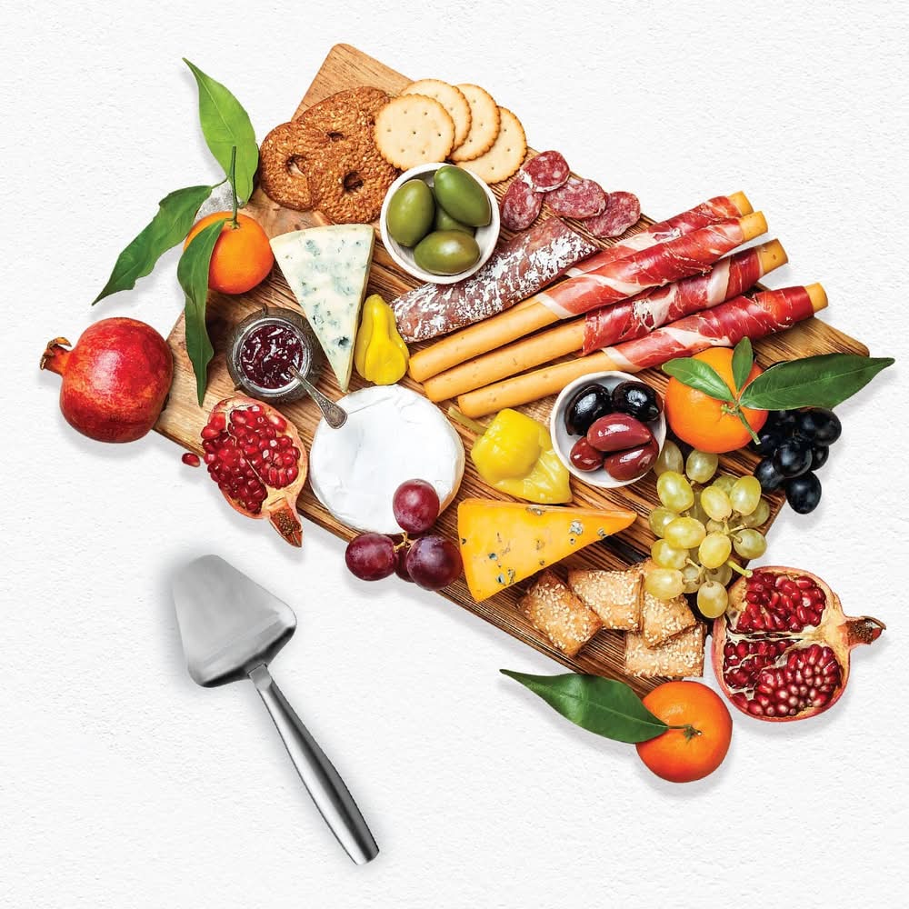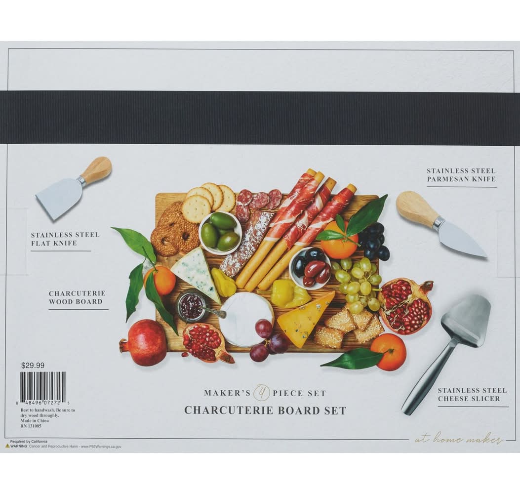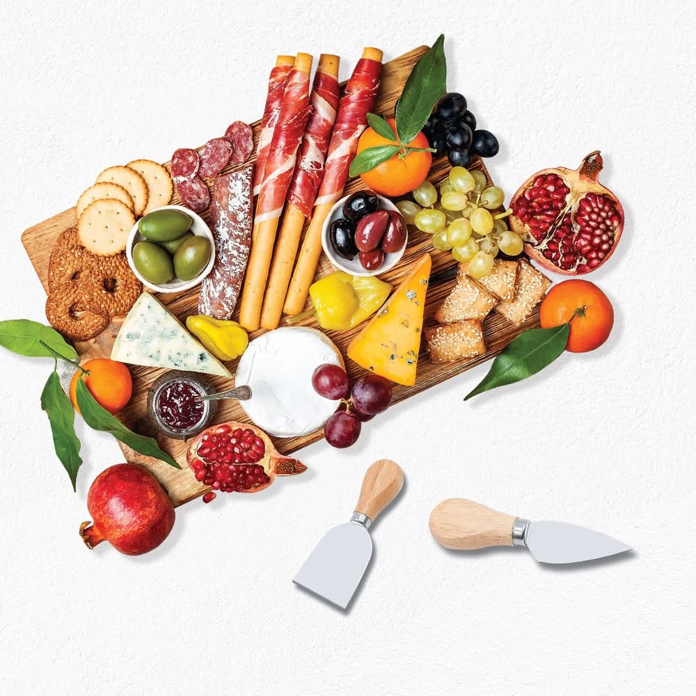 This kit is perfect for traditional charcuterie and so much more! Includes wooden board and stainless steel utensils. Can also be a hot chocolate board, a sundae bar or a cupcake decorating bar. Multiple uses make this the perfect gift or addition to your own entertaining pieces. Board made of premium wood Stainless steel utensils 4-piece set
