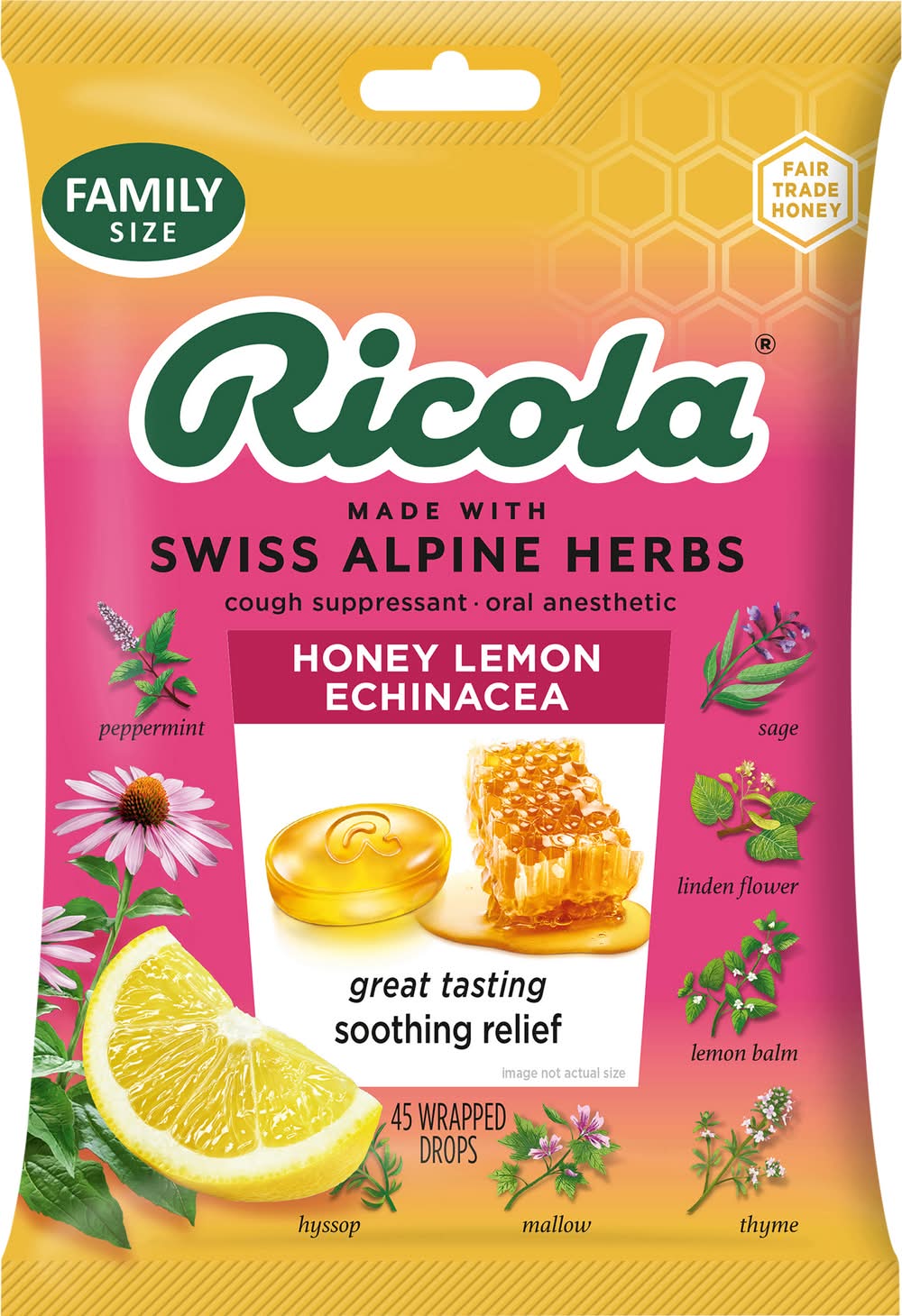 Ricola Cough Suppressant Throat Drops Family Size, Honey Lemon Echinacea (45 ct)