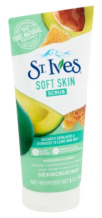 St. Ives Face Scrub Avocado and Honey is enriched with natural exfoliants and features avocado extract and honey, ingredients known for their moisturizing and nourishing properties. This face scrub is designed to smooth away dryness and reveal soft, even skin. It includes finely milled and polished walnut shell powder, which exfoliates only the outer layer of dead skin cells. This scrub is paraben-free, oil-free, and has been dermatologist-tested. Additionally, it is non-comedogenic, ensuring it won’t clog pores. St. Ives is certified by PETA for not testing on animals.