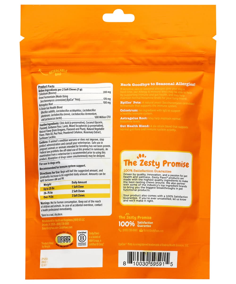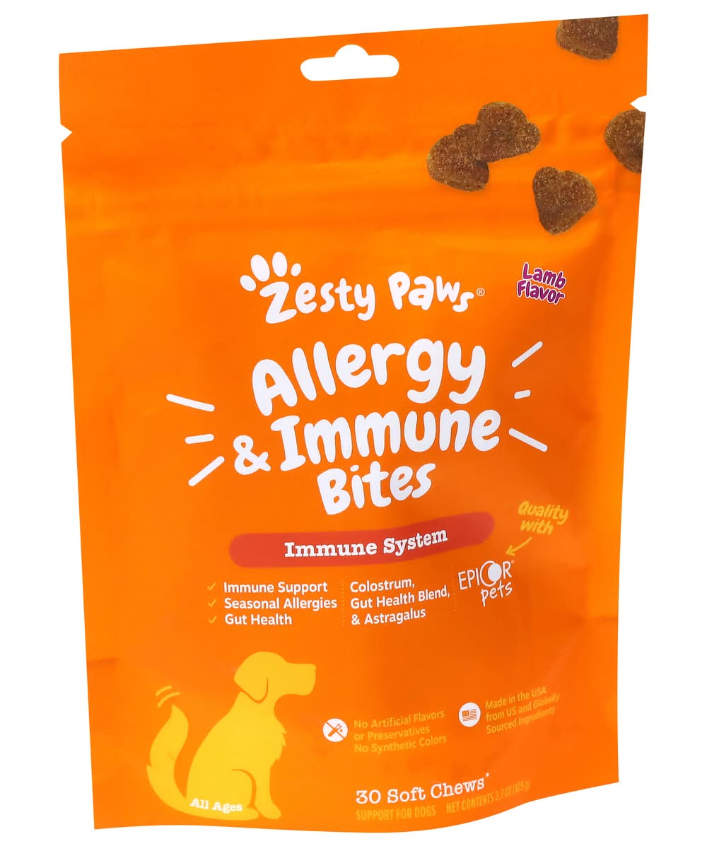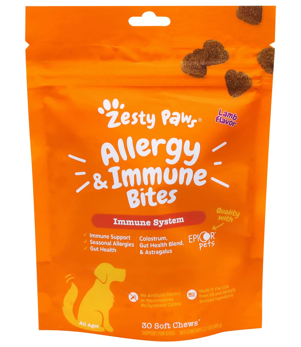 Zesty Paws Allergy & Immune Bite Soft Chews For Dogs, Lamb (3.7 oz, 30 ct)