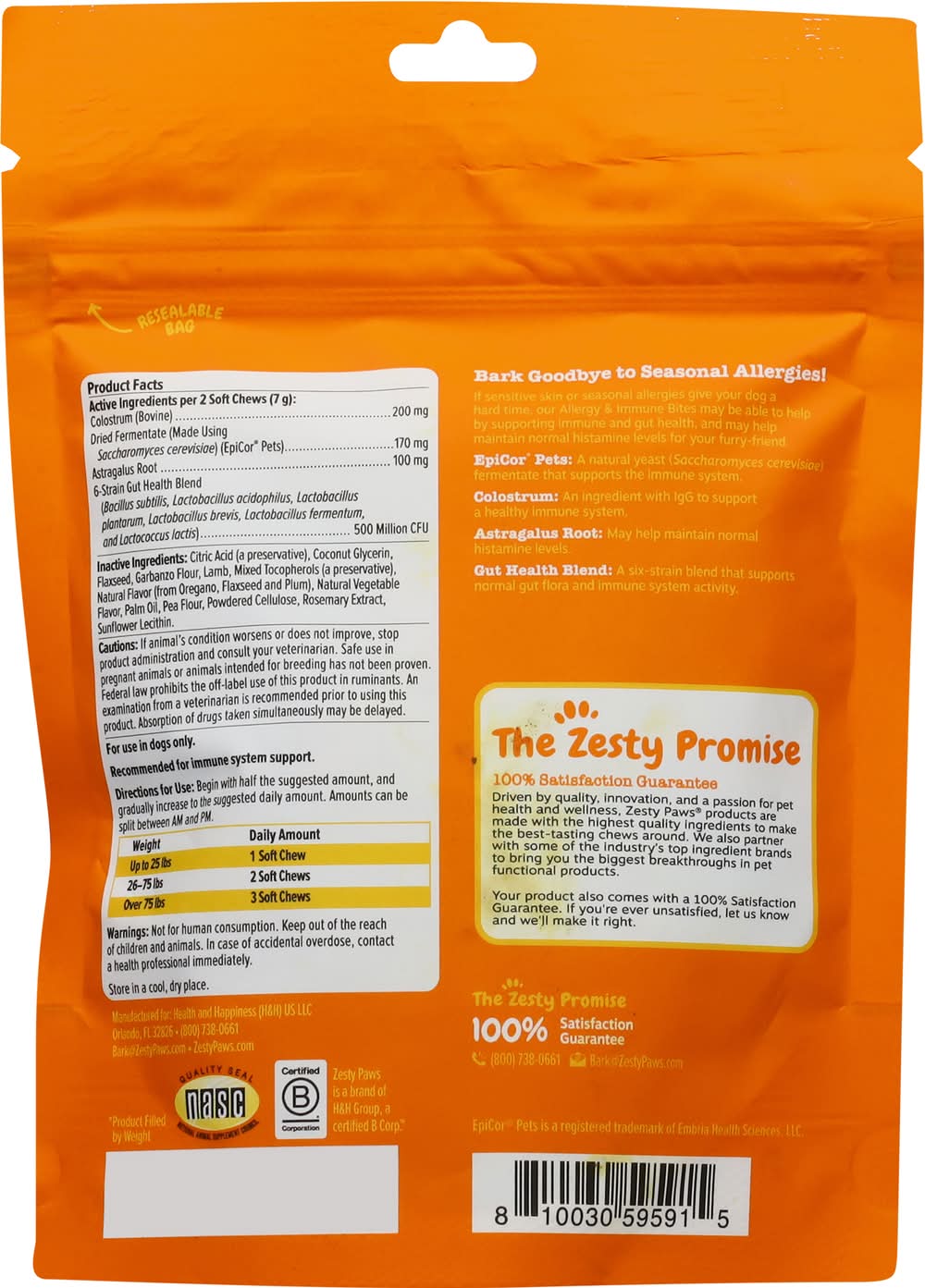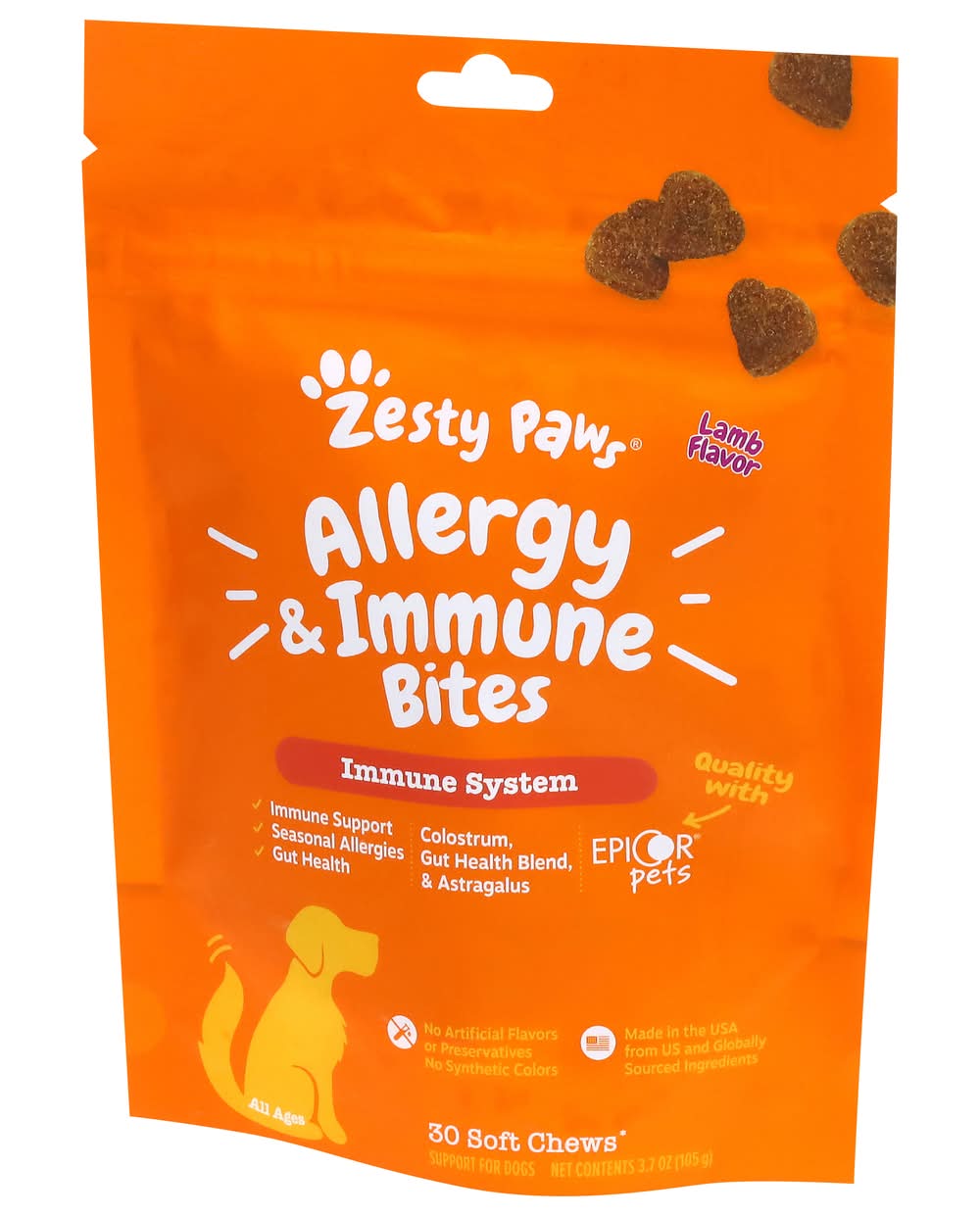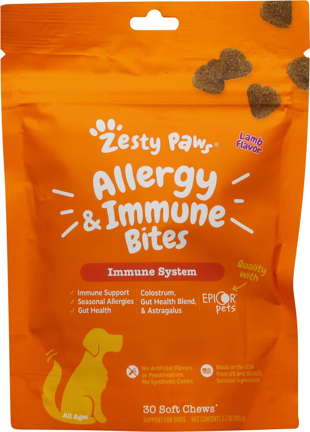 Zesty Paws Allergy & Immune Bite Soft Chews For Dogs, Lamb (3.7 oz, 30 ct)