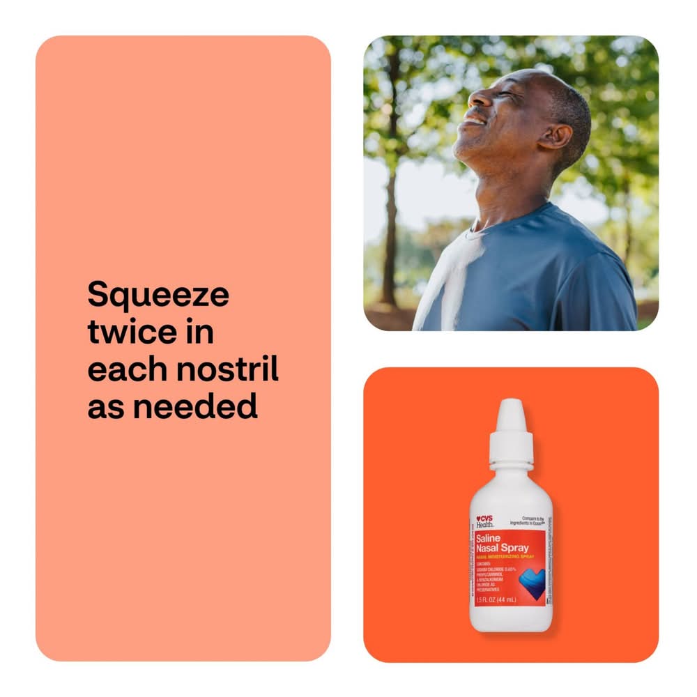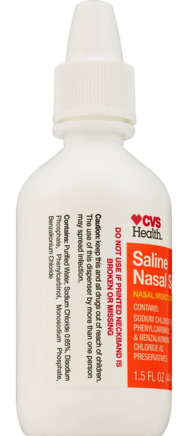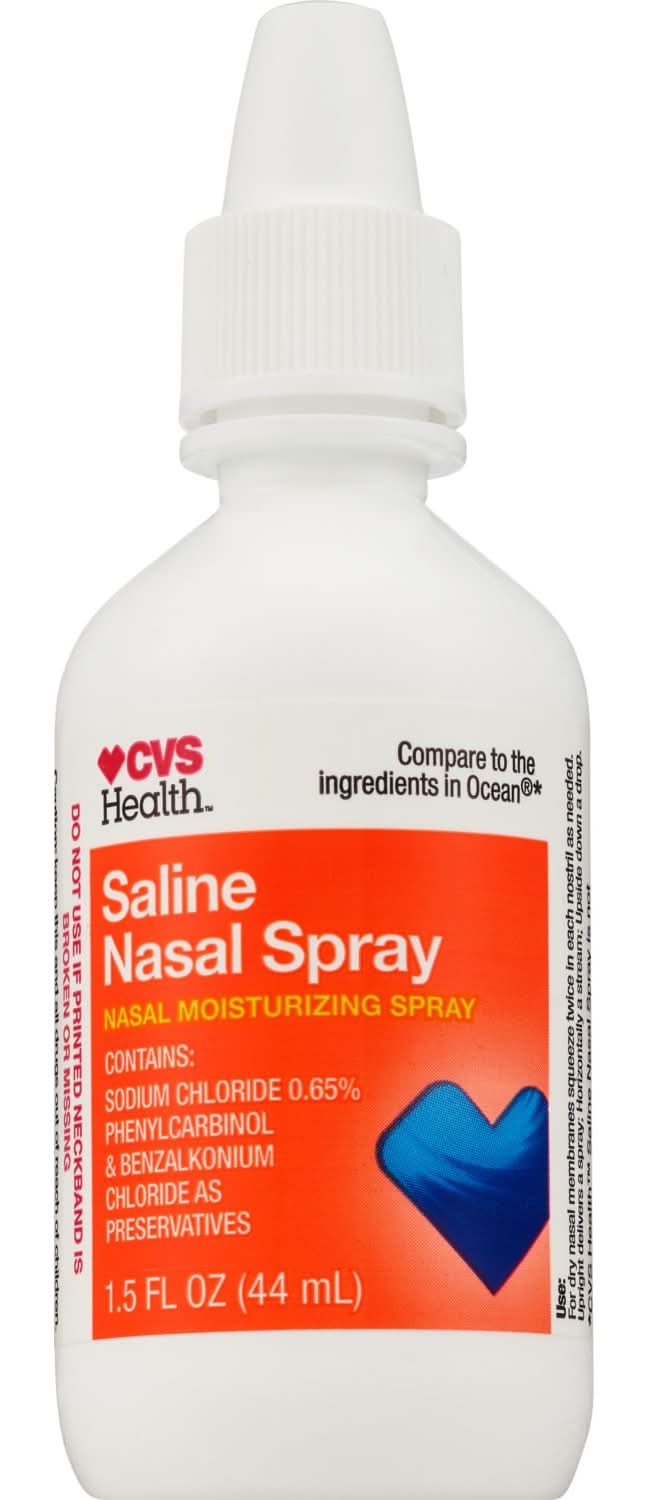 CVS Health Saline Nasal Spray is a non-medicated product formulated to soothe dry nasal membranes. It offers relief for dryness associated with allergy, sinus, and cold medications. The spray contains sodium chloride 0.65%, phenylcarbinol, and benzalkonium chloride, which serve as preservatives. It is safe for daily use and is gluten-free. To maintain hygiene and prevent the spread of infection, this nasal moisturizing spray should not be shared between multiple people.