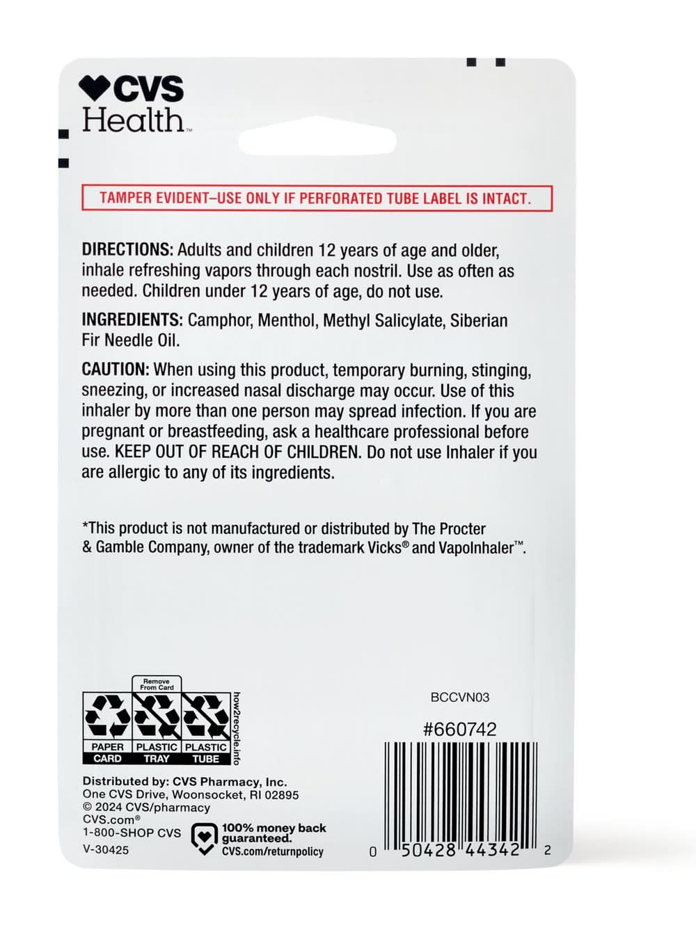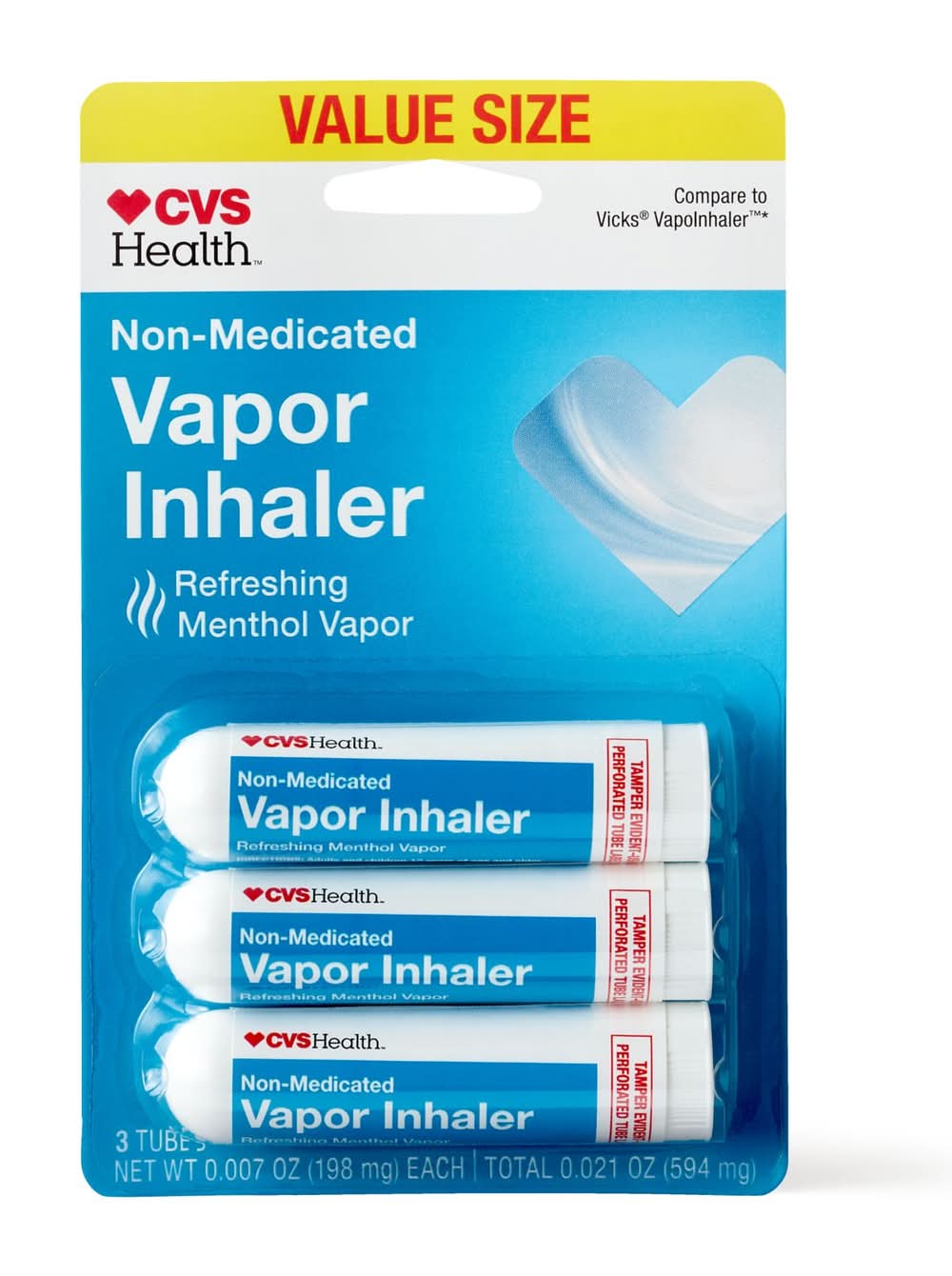 This CVS Health Nasal Inhaler is Non-Medicated. Refreshing Menthol Vapor Compare to Vicks® VapoInhaler™ 3 Pack