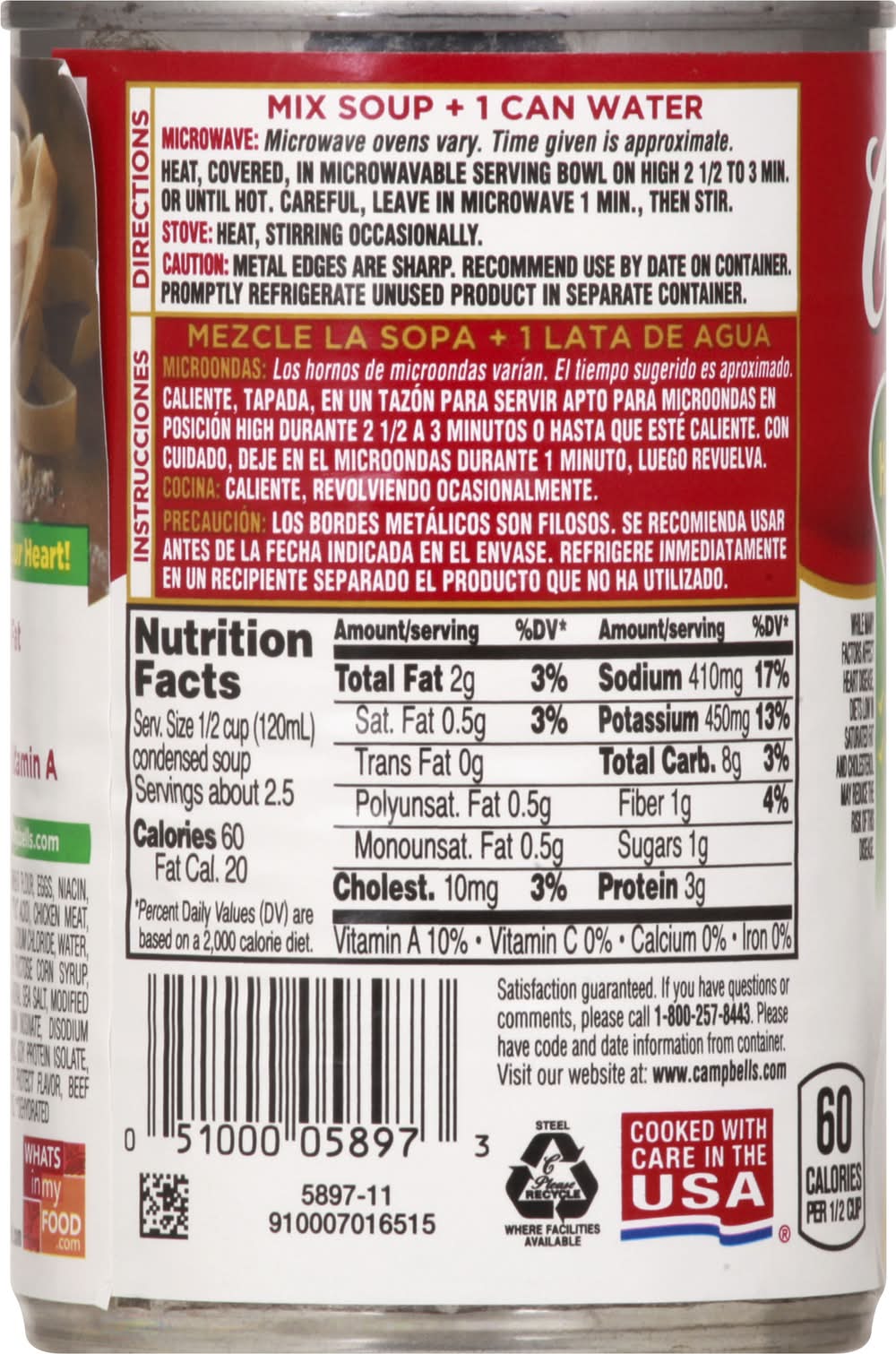 Directions: mix soup + 1 can water. microwave: microwave ovens vary. time given is approximate. heat, covered, in microwavable serving bowl on high 2 1/2 to 3 min. or until hot. careful, leave in microwave 1 min., then stir. stove: heat, stirring occasionally. caution: metal edges are sharp. recommend use by date on container. promptly refrigerate unused product in separate container.