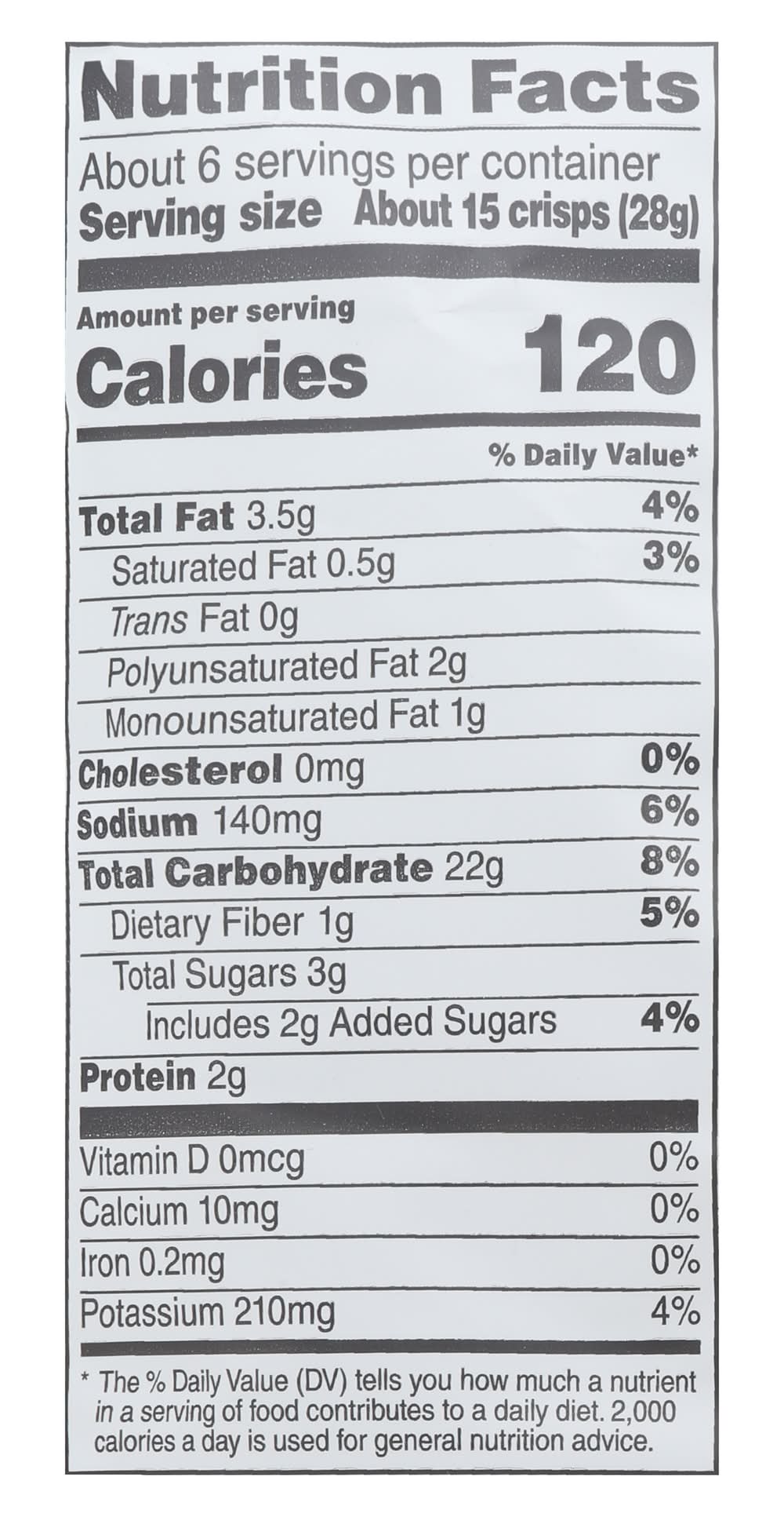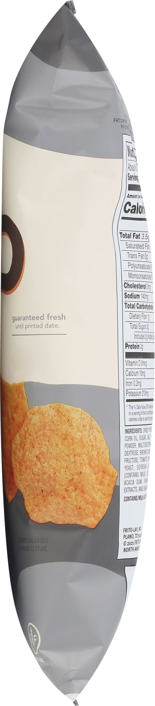 Enjoy these baked potato crisps as an in-between meals snack. Frito-Lay's line of Oven Baked snacks are baked, not fried, to give you the great taste. On top of that, Oven Baked Barbecue Flavored Potato Crisps have 65% less fat than regular potato chips. • Flavor: Barbecue • Frito-Lay, Inc., Plano,TX,75024-4099