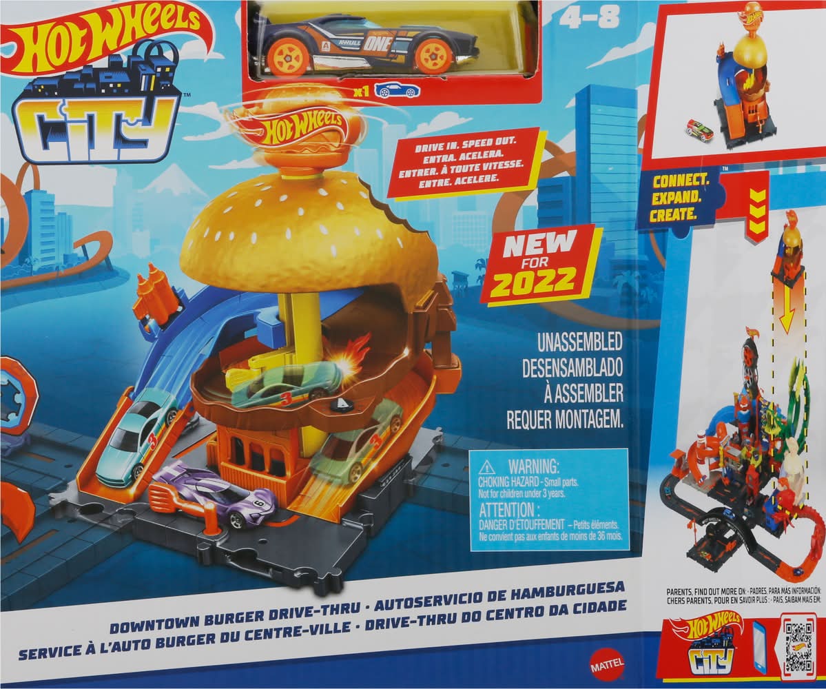 Hot Wheels City Downtown 4-8 Downtown Burger Drive-Thru Play Set