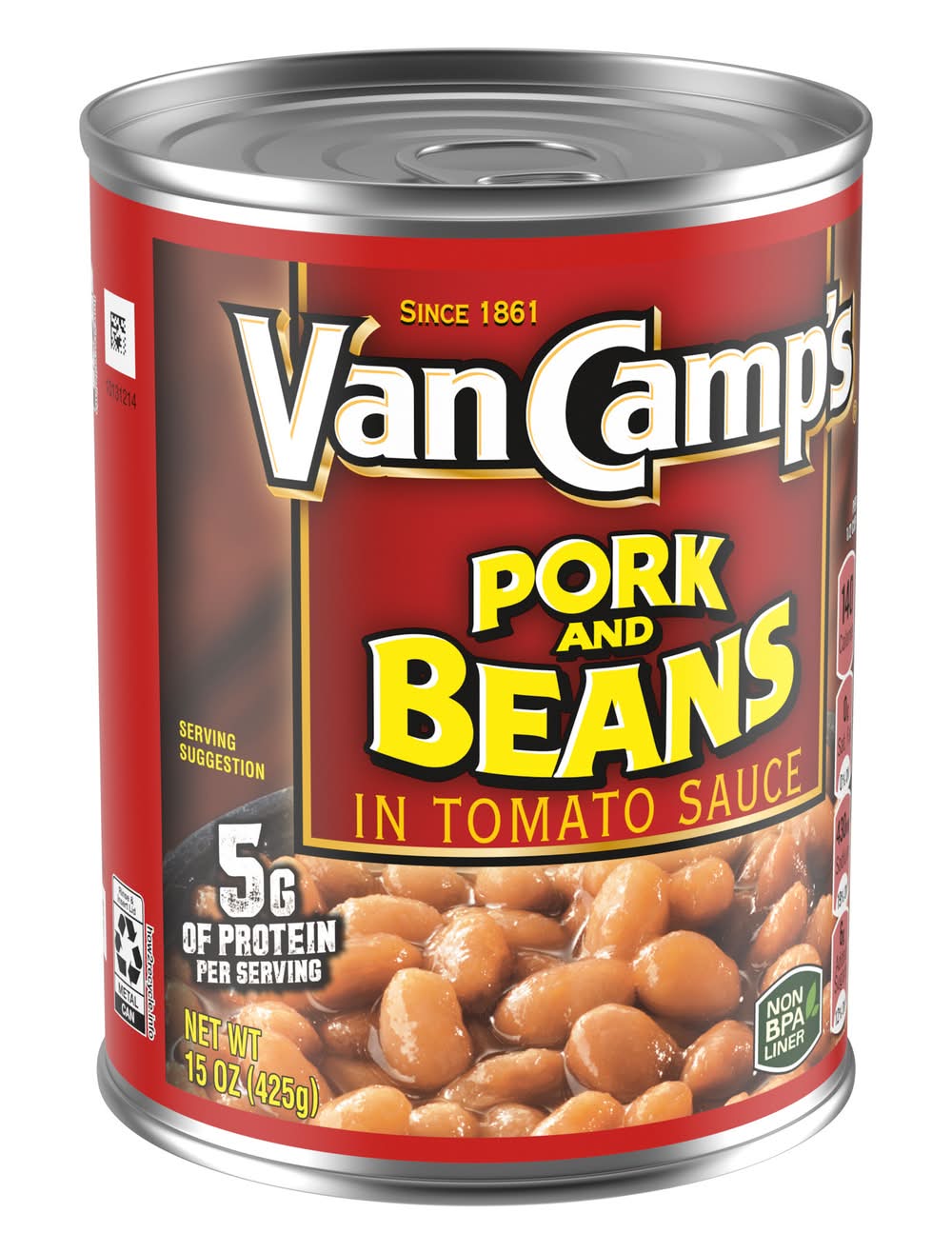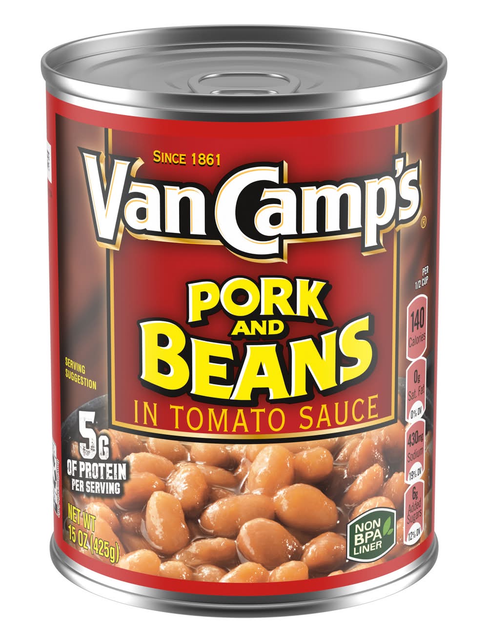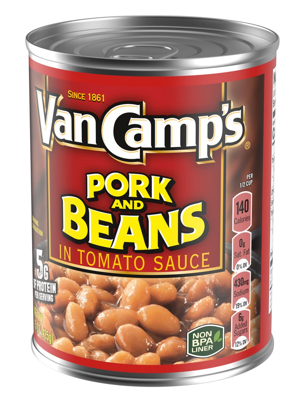 Savor the flavor of classic pork and beans with Van Camp's Pork and Beans in Tomato Sauce. These delicious canned beans have 6 grams of protein per serving and are simmered in tomato sauce and a special blend of spices to achieve that iconic Van Camp's taste you know and love. Serve these beans plain as a simple side dish or use them as an ingredient in recipes like baked beans and more. Easily prepare pork and beans in the microwave or on the stove top for a quick meal. Easy to bring with you wherever you go, these Van Camp's beans also make perfect emergency food, backpacking food and camping food, or pack them into your survival food kit. Van Camp’s has been making delicious beans for more than 140 years.