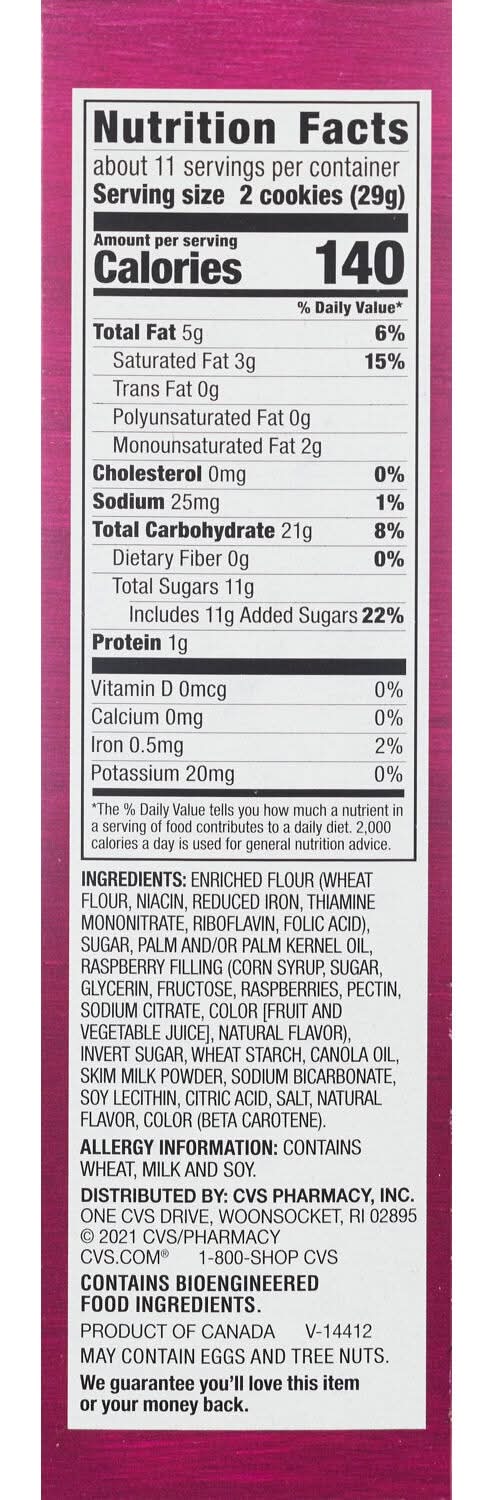 Absolutely divine. Fresh, oven-baked taste everyone loves. Made with rich and sweet, perfectly crumbly shortbread. Packed with a creamy vanilla filling and a tart raspberry-flavored center. Naturally flavored cookies with 0 g trans fat per serving. Gold Emblem Raspberry and Creme Shortbread Cookies are bursting with natural raspberry flavor in the center with a creamy vanilla filling. Treat Yourself Well® Our commitment to quality means we shop carefully for ingredients, adjust recipes, and taste-test everything because in our house as in yours, what matters most is taste. In fact, we guarantee you'll love this item. We're Gold Emblem: Our standard is delicious. Per 2 Cookies: 140 calories; 3g sat fat (15% DV); 25mg sodium (1% DV); 10g sugars. Please recycle. Product of Canada. With natural raspberry flavor Tastes great with a cup of tea 0g trans fat per serving Great for snacking or sharing with guests • Flavor: Raspberry • Packaging: Reusable