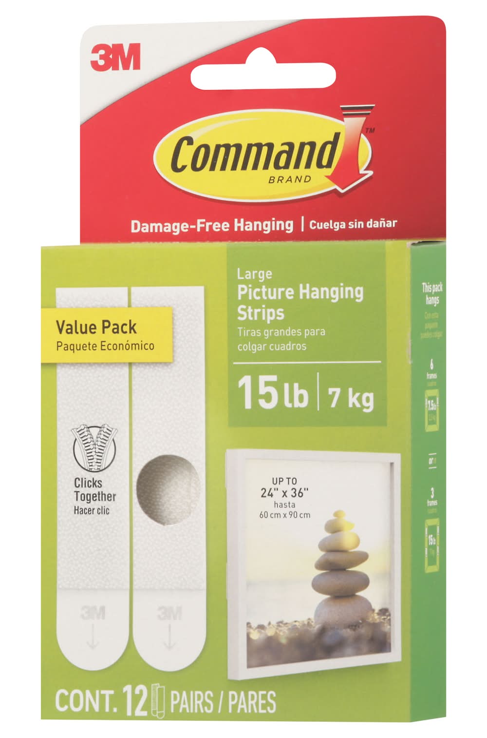 Command Damage-Free Picture Hanging Strips 15 lb, L, White (12 ct)
