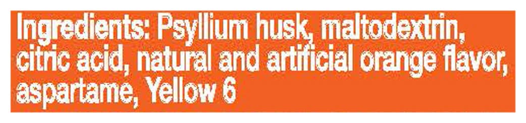 Ingredients: Psyllium Husk, Maltodextrin, Citric Acid, Natural and Artificial Orange Flavor, Aspartame, Yellow 6