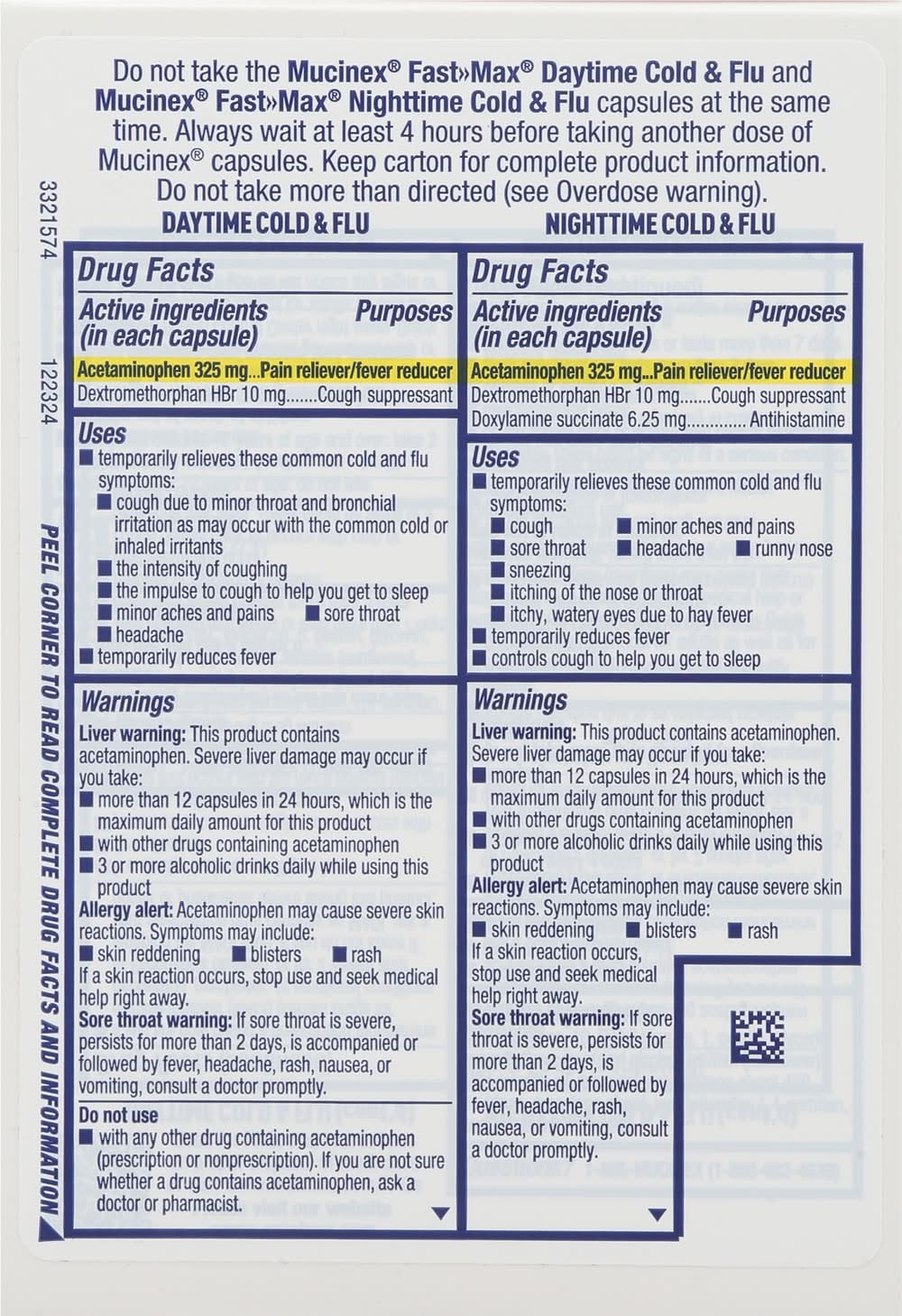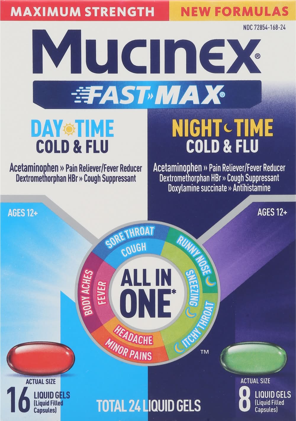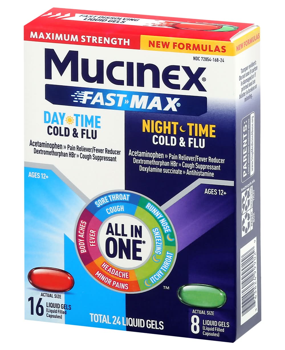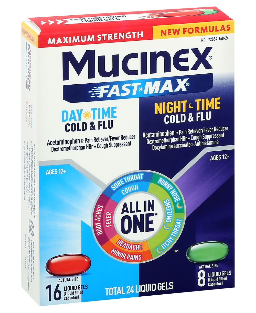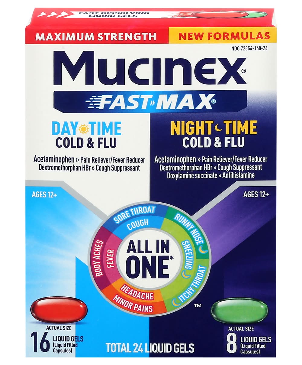 Mucinex Fast Max Liquid Gels Daytime Night Time Cold & Flu (24 ct)