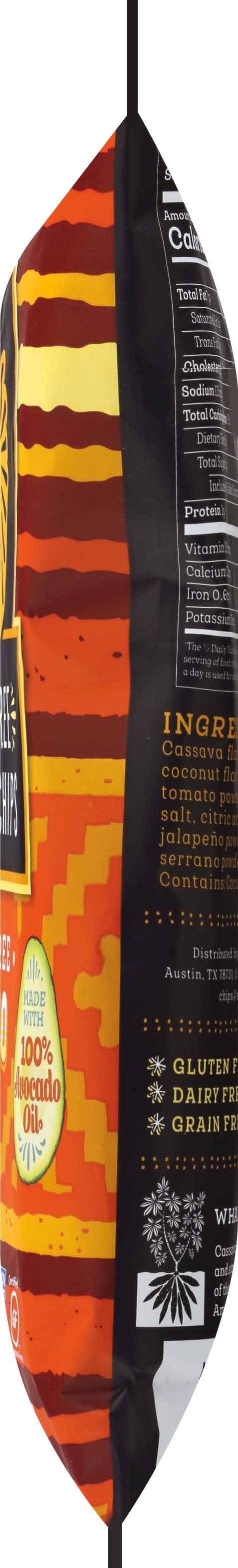 Ingredients: Cassava Flour, Avocado Oil, Coconut Flour, Nutritional Yeast, Tomato Powder, Chia Seed, Sea Salt, Citric Acid, Garlic Powder, Jalapeno Powder, Onion Powder, Serrano Powder Contains: Tree Nuts