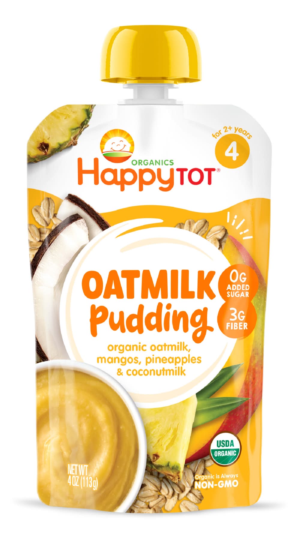 Happy Tot Organics dairy-free Oatmilk Pudding has all the creaminess you’d expect from a pudding, and all the nutrition you’d expect from Happy Tot. Made with organic fruits & veggies blended with oatmilk, this nutritious pudding contains 0g added sugar and 3g fiber. Your toddler can enjoy this creamy snack anywhere from a convenient on-the-go pouch. All Happy Tot products are always certified USDA organic, made with ingredients that are non-GMO and grown without the use of toxic persistent pesticides, in packaging made without BPA, BPS, or phthalates.