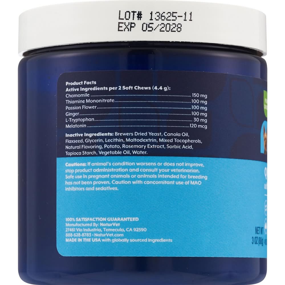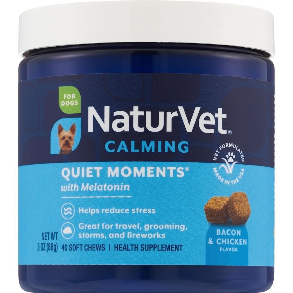 NaturVet Calming Quiet Moments Soft Chews Supplements For Dogs, Bacon-Chicken (3 oz, 40 ct)