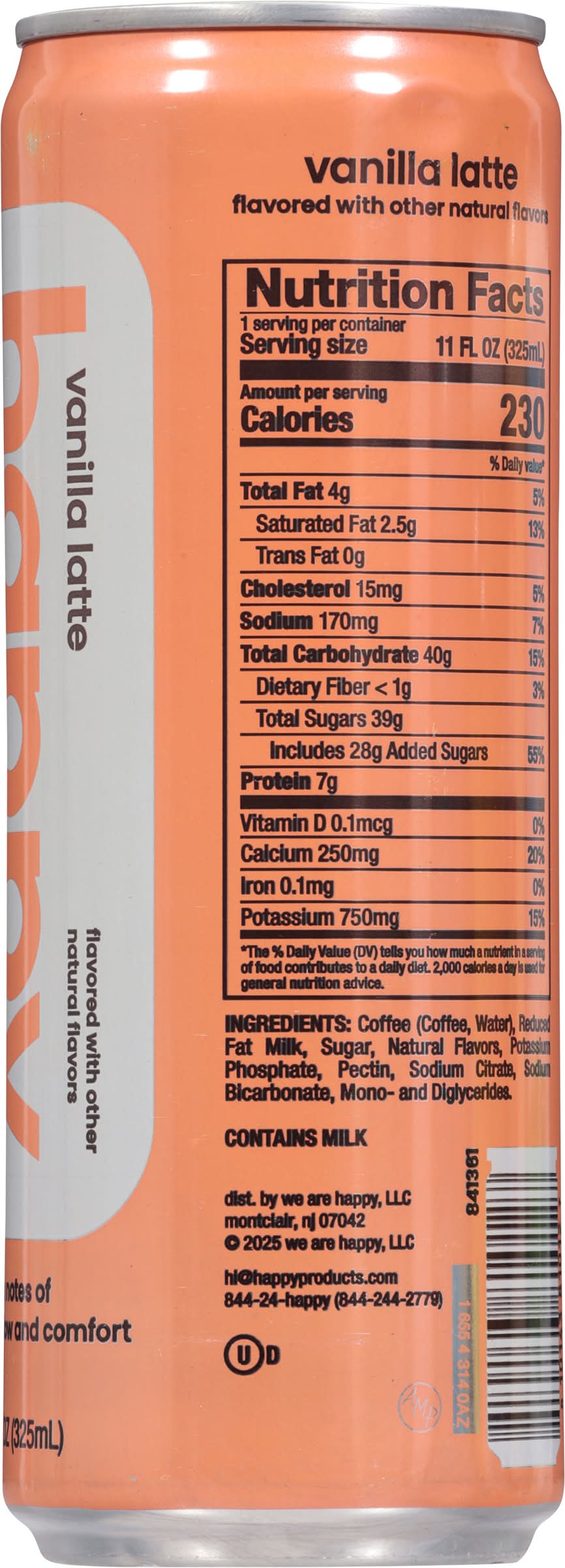 Happy Ready To Drink Coffee, Vanilla Latte (11 fl oz)