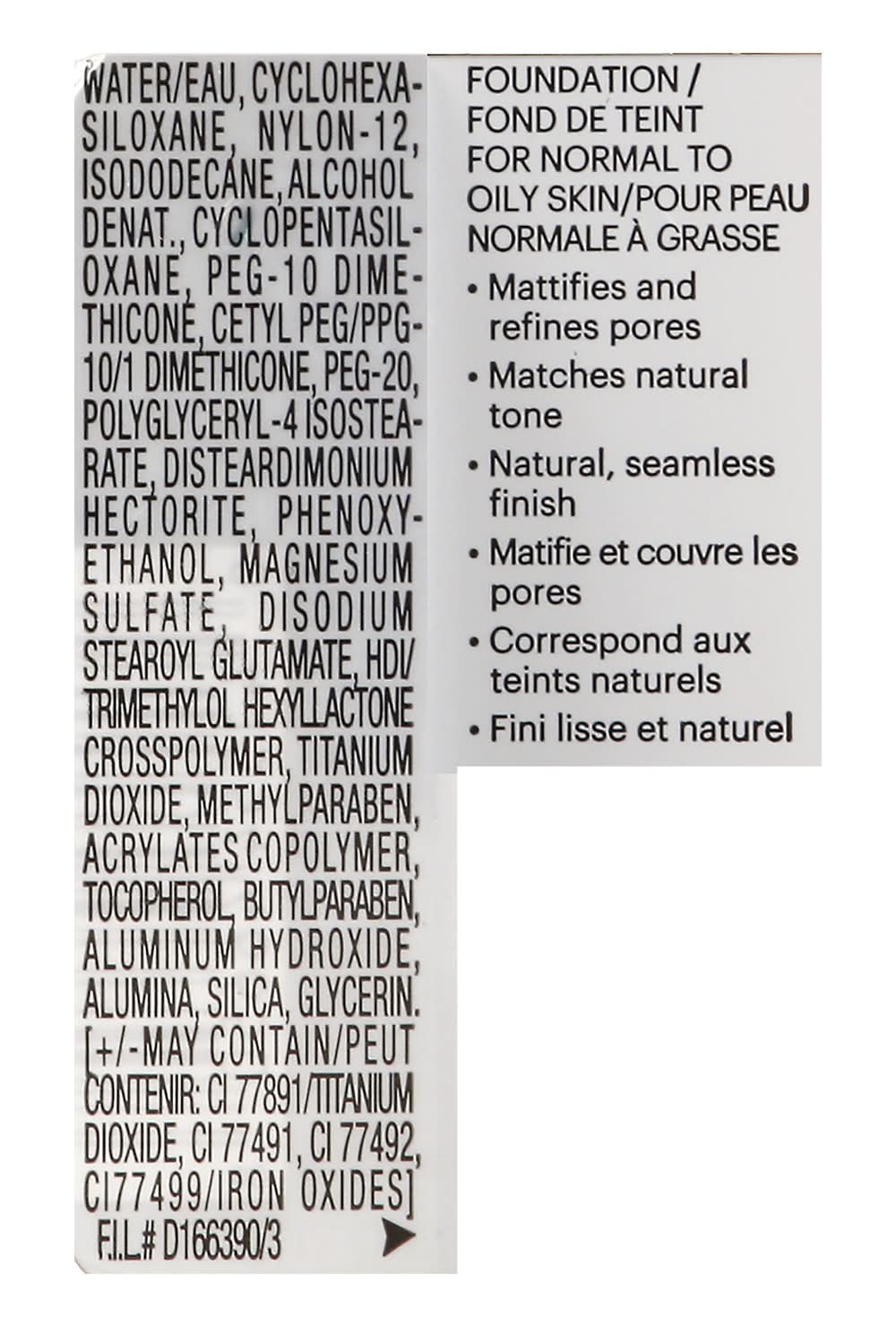 Ingredients: Aqua/Water/Eau, Cyclohexasiloxane, Nylon-12, Isododecane, Alcohol Denat, Cyclopentasiloxane, PEG-10 Dimethicone, Cetyl PEG/PPG-10/1 Dimethicone, PEG-20, Polyglyceryl-4 Isostearate, Disteardimonium Hectorite, Phenoxyethanol, Magnesium Sulfate, Disodium Stearoyl Glutamate, HDI/Trimethylol Hexyllactone Crosspolymer, Titanium Dioxide, Methylparaben, Acrylates Copolymer, Tocopherol, Butylparaben, Aluminum Hydroxide, Alumina, Silica, Glycerin. [+/- May Contain: CI 77891/Titanium Dioxide, CI 77491, CI 77492, CI 77499/Iron Oxides