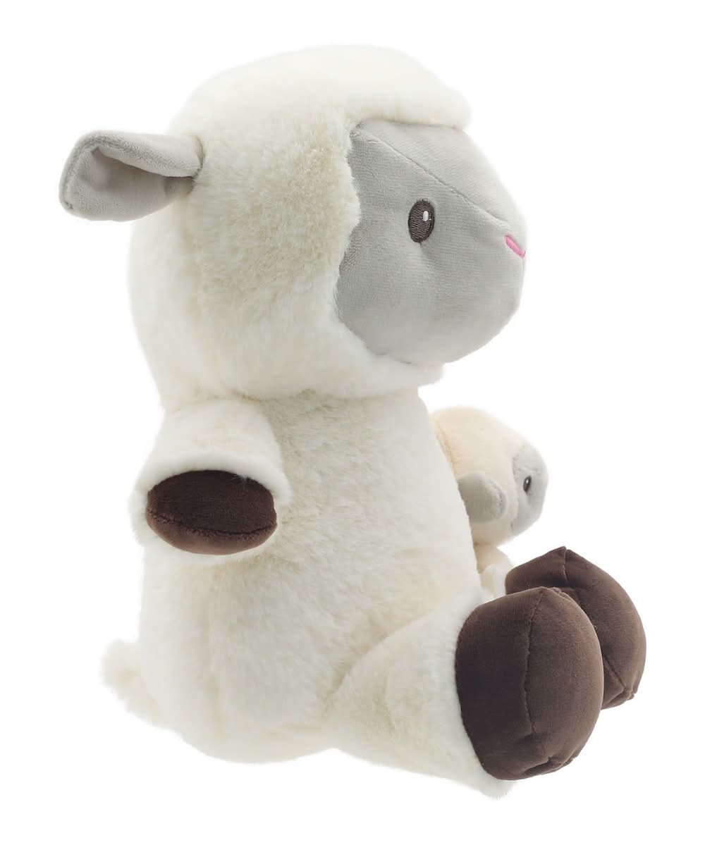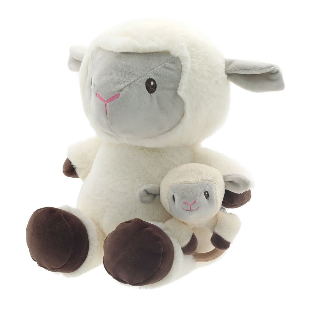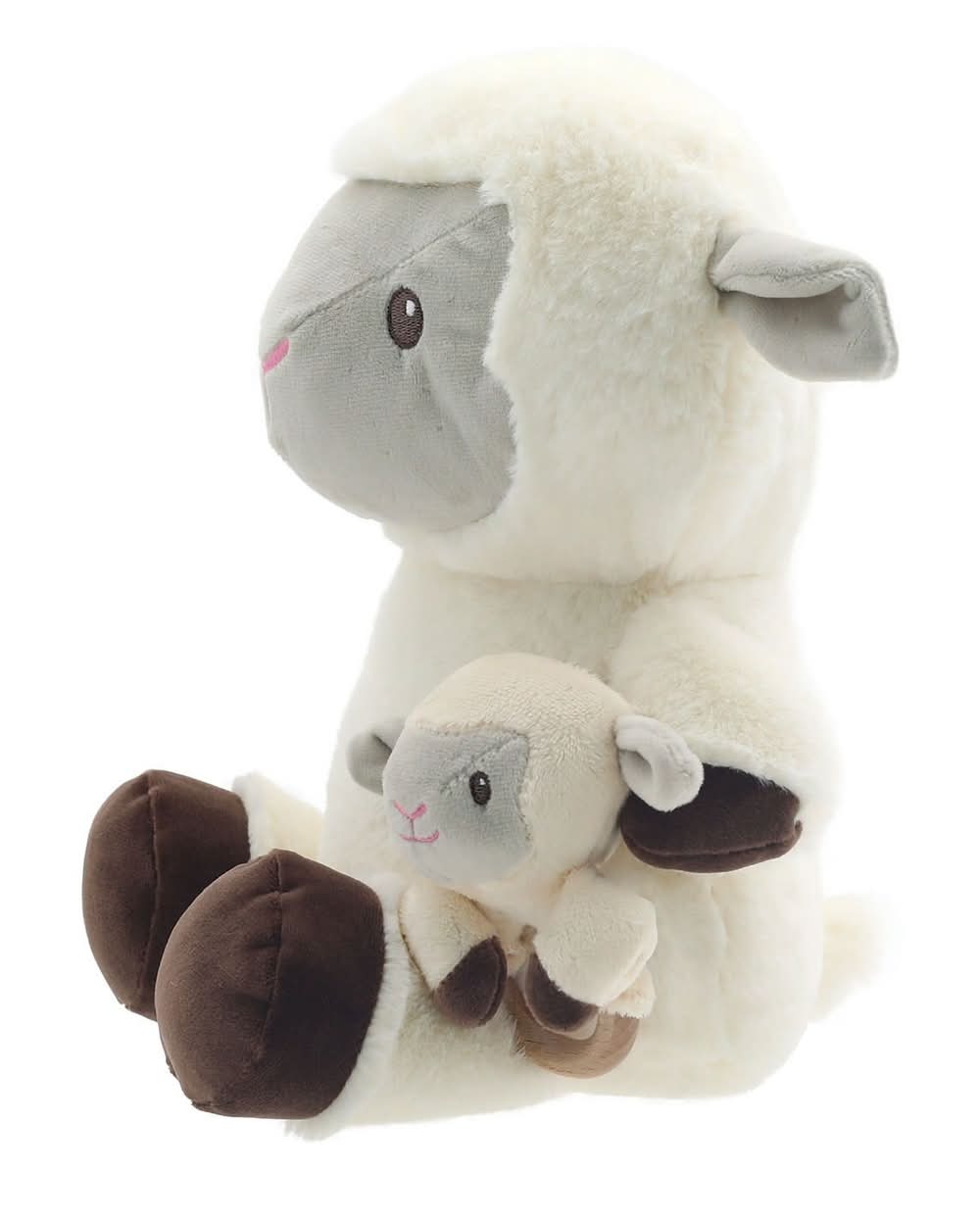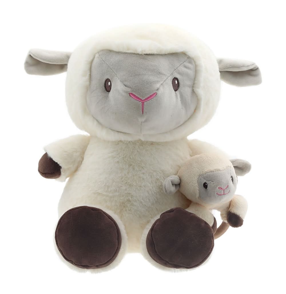 This adorable Spring lamb comes with a tiny little lamb tucked under the arm. Made from a soft plush material. Durable construction Makes a great gift Super soft plush material 10" tall