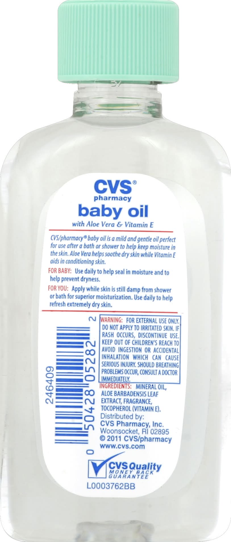 Ingredients: Mineral Oil, Aloe Barbadensis Leaf Extract, Fragrance, Tocopherol (Vitamin E)