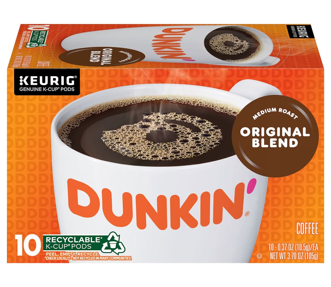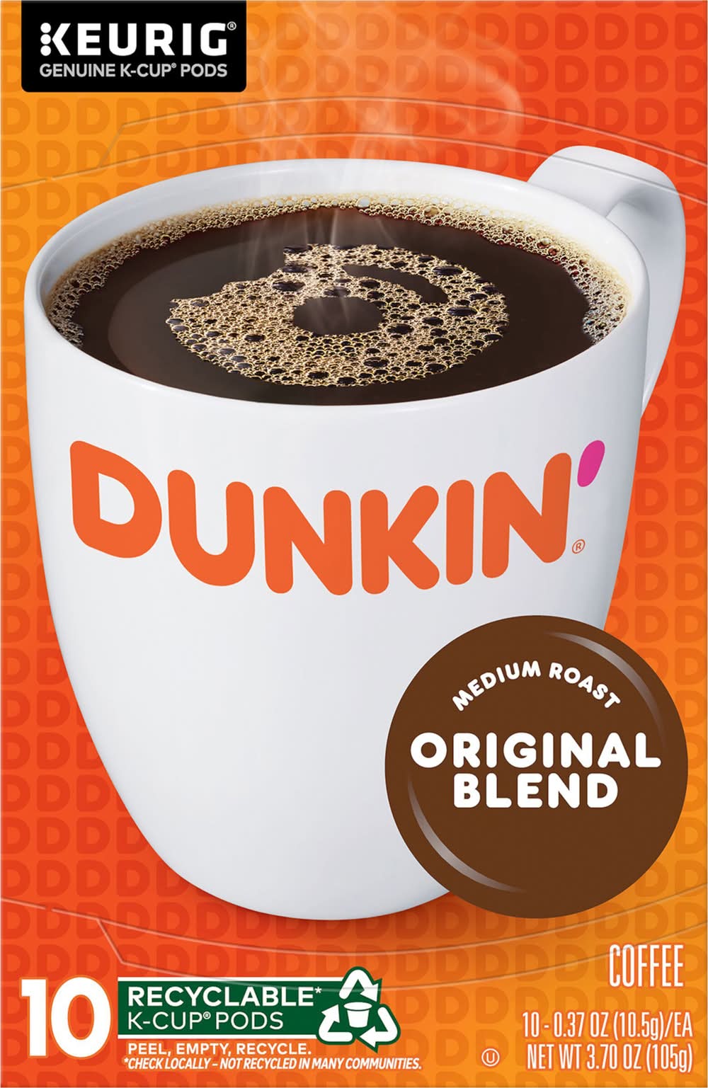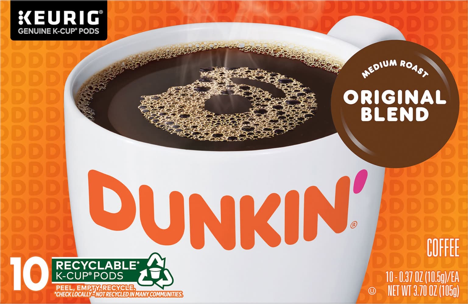 Bring home everything you love about Dunkin’ Donuts with our Keurig® K-Cup® pods. Enjoy an authentic Dunkin’ Donuts experience in no time at all with our signature-blended beans and rich aroma. Keurig K-Cup pods: Experience the love of Dunkin’ Donuts at home Signature-blended beans and rich aroma 100% Premium Arabica coffee 10 count box Packaging: Reusable