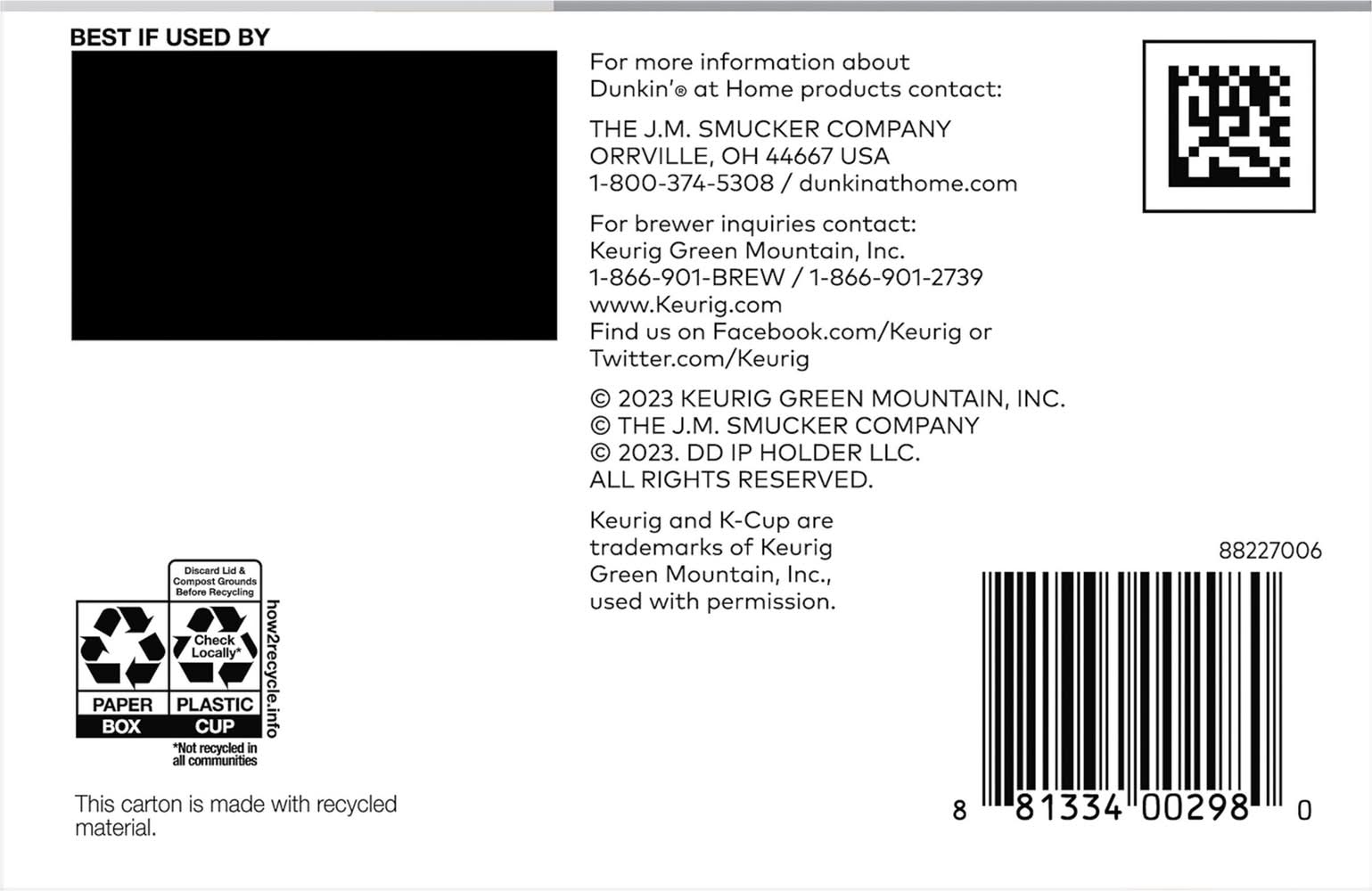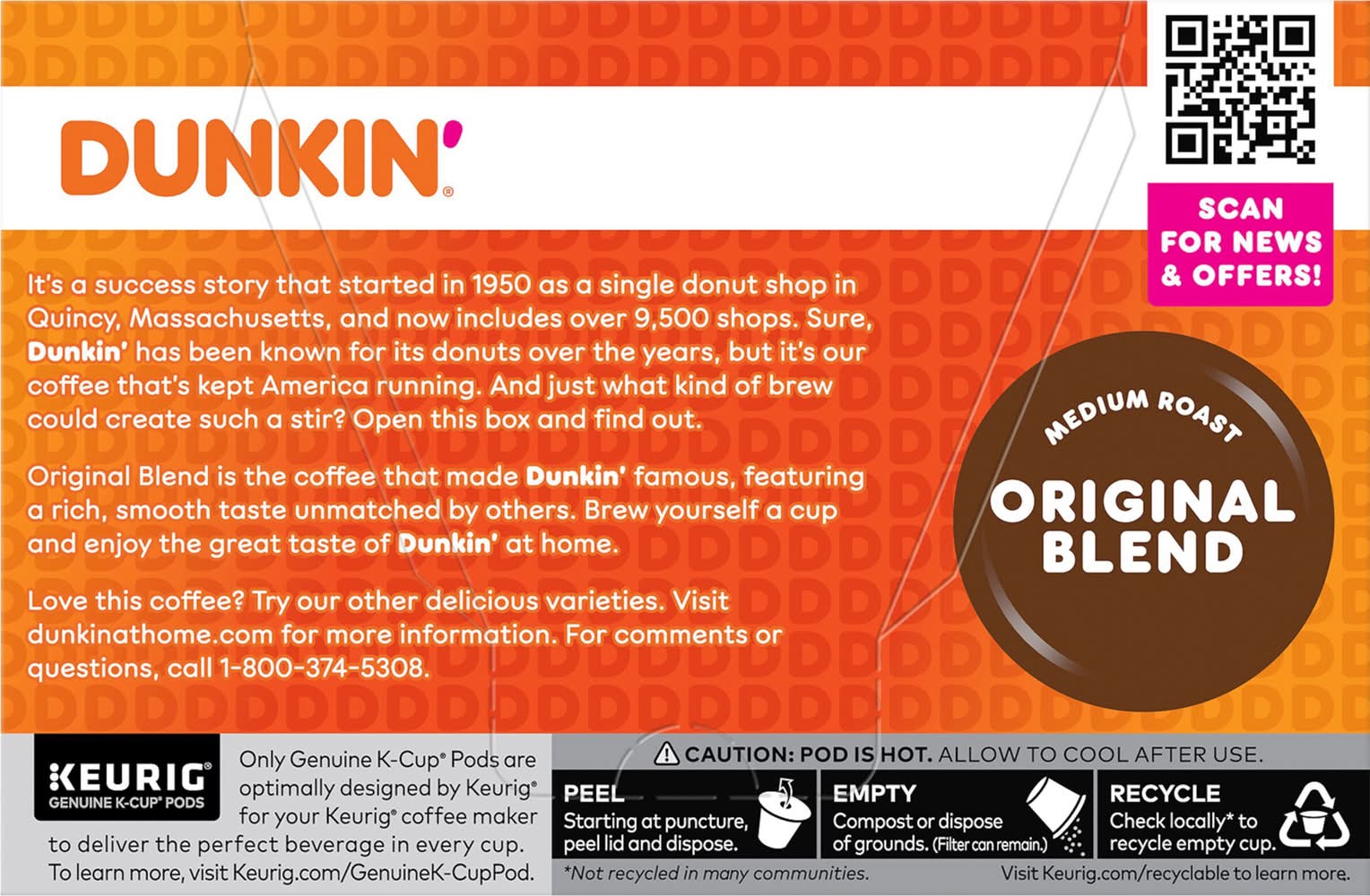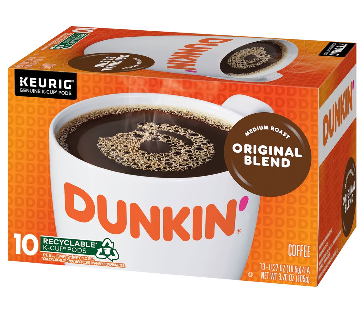 Bring home everything you love about Dunkin’ Donuts with our Keurig® K-Cup® pods. Enjoy an authentic Dunkin’ Donuts experience in no time at all with our signature-blended beans and rich aroma. Keurig K-Cup pods: Experience the love of Dunkin’ Donuts at home Signature-blended beans and rich aroma 100% Premium Arabica coffee 10 count box Packaging: Reusable