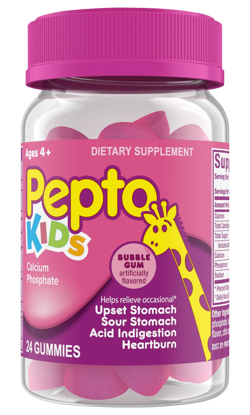 Pepto-Bismol Calcium Phosphate Dietary Supplement Gummies For Kids, Bubble Gum (24 ct)