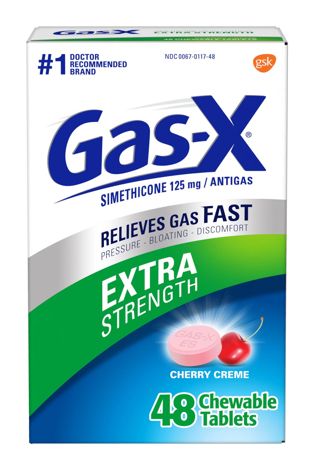 Gas-X Extra Strength Chewable Tablets with Simethicone 125 mg provide effective relief from gas-related pressure, bloating, and discomfort. Each cherry-flavored chewable tablet contains 45 mg of calcium and is formulated with simethicone, the antigas medicine frequently recommended by physicians for these symptoms. To maintain product integrity, store tablets at a controlled temperature between 68-77 degrees Fahrenheit (20-25 degrees Celsius) and protect them from moisture. The smooth, creamy cherry taste offers a pleasant experience while addressing gas symptoms.