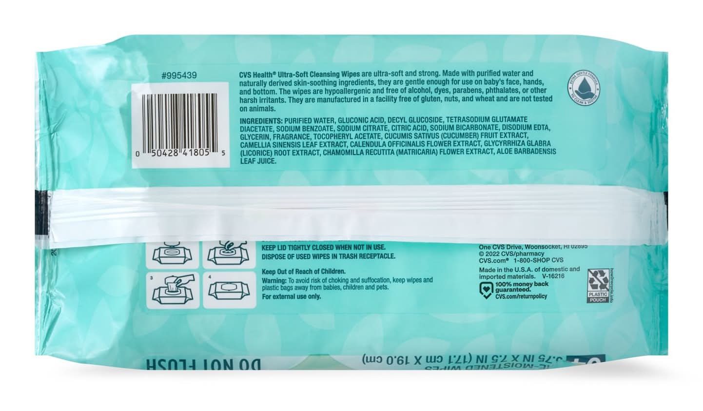 CVS Health Ultra-Soft Cleansing Wipes are thick, large and ultra-soft. Made with purified water and containing naturally derived skin-soothing ingredients, they are gentle enough for use on baby's face, hands and bottom. The wipes are hypoallergenic and free of alcohol, dyes, parabens, phthalates or other harsh irritants.