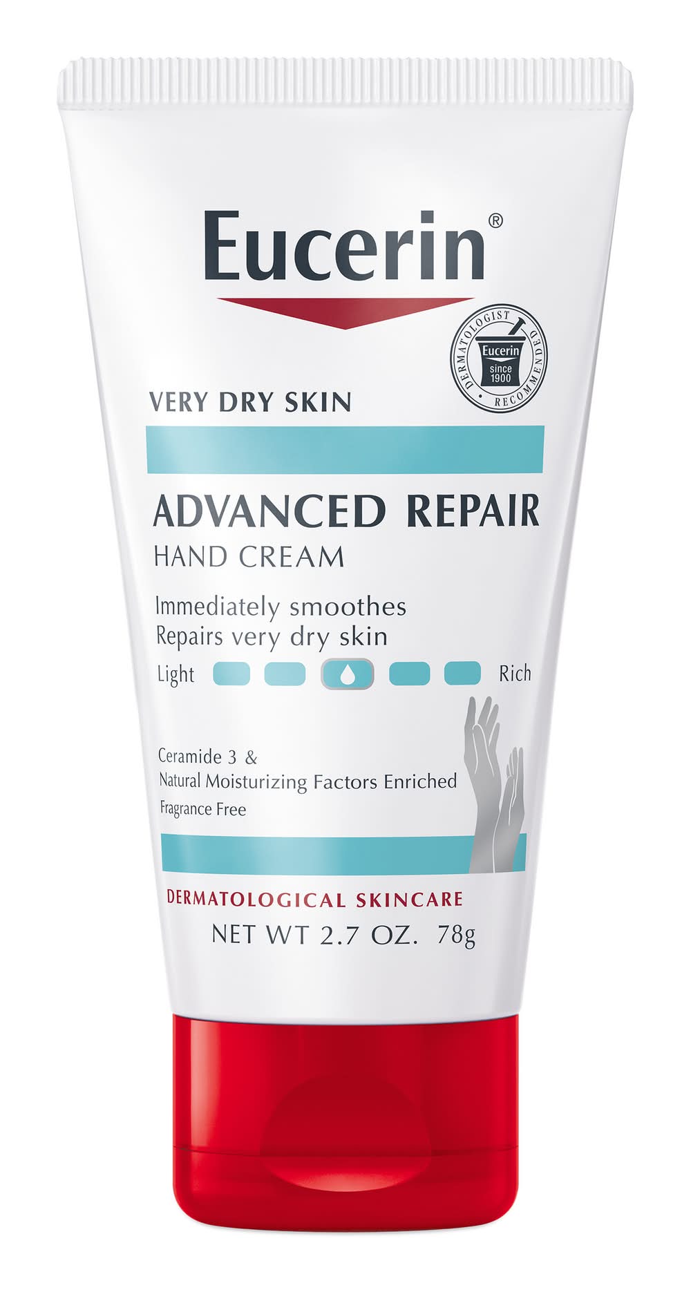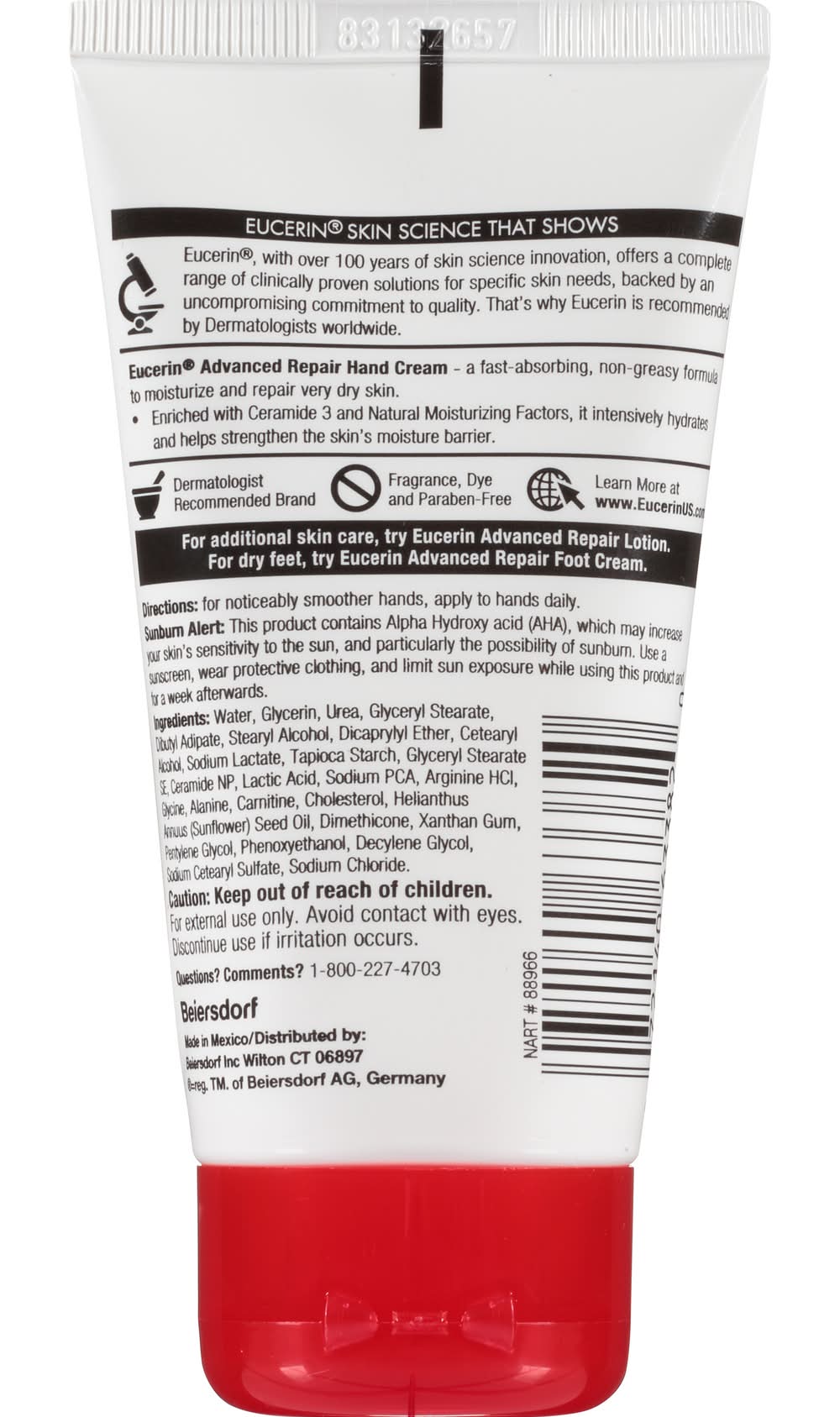 Eucerin Advanced Repair Hand Cream, Travel Size Hand Cream for Dry Hands, Unscented, 2.7 Oz Tube