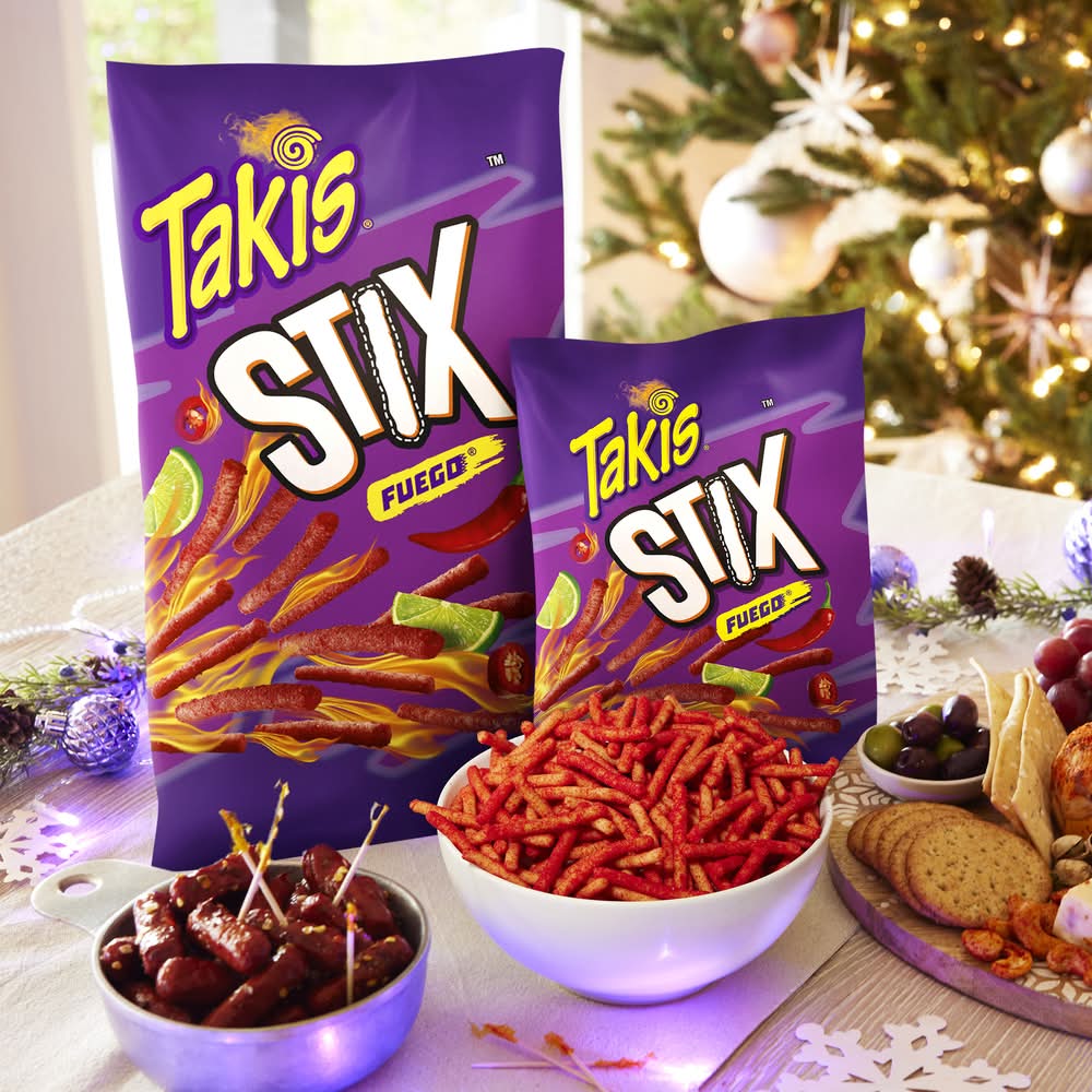 Mix-up how you snack with Takis Stix Fuego Corn Sticks and give your taste buds the gift of launching into an unexplored universe of sensational flavor combinations. We know hunger can strike at a moment's notice, creating an unforecasted storm of emotion that distracts you from living in the moment. Which is why we set out to pioneer irresistible snacks that unleash tantalizing waves of flavor and deliver an unbeatable crunch in every single bite. Pack a bag to give yourself a tasty pick-me-up at school, be ready to conquer hunger while spending the day hanging with your friends, or grab a handful for when you just need a boost of flavor while hunting for new adventures. Our Hot Chili Pepper and Lime artificially flavored corn snacks make quick work of not only extinguishing your own hunger, but they're also a great food for sharing with friends and family. Share a snack with your squad and transform a low-key hangout into a delicious celebration or turn the vibes up to ten on your next road trip when you bring Takis Stix Fuego Corn Sticks. Try all our supercharged Takis' family of snacks and experience for yourself how our snacks give your senses a first-class ticket out of this world—changing the way you feast on flavor forever. Are you ready to Bring the Kick? Rolled corn tortilla chips: These chips are made with rolled corn tortillas, which gives them a unique shape and texture. They are also thinner than traditional tortilla chips, which makes them easier to eat. Hot chili pepper and lime flavor: These chips are flavored with hot chili peppers and lime, which gives them a fiery and refreshing flavor. The heat level is moderate, so they are not too spicy for most people. Crunchy and flavorful: These chips are crunchy and flavorful. They are perfect for snacking on their own or dipping in salsa or guacamole. Good source of fiber: These chips are a good source of fiber, which can help you feel full and satisfied. Flavor: Fuego