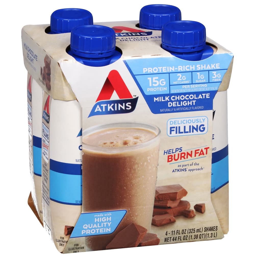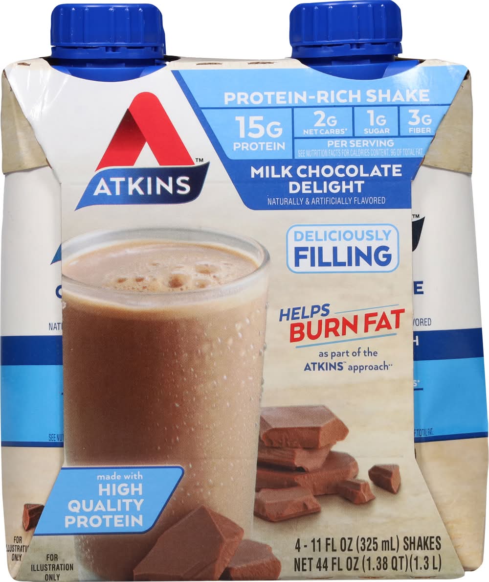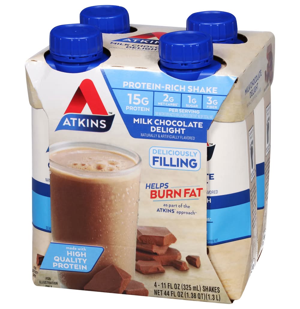Atkins Protein-Rich Shake, Milk Chocolate Delight (4 x 11 fl oz)