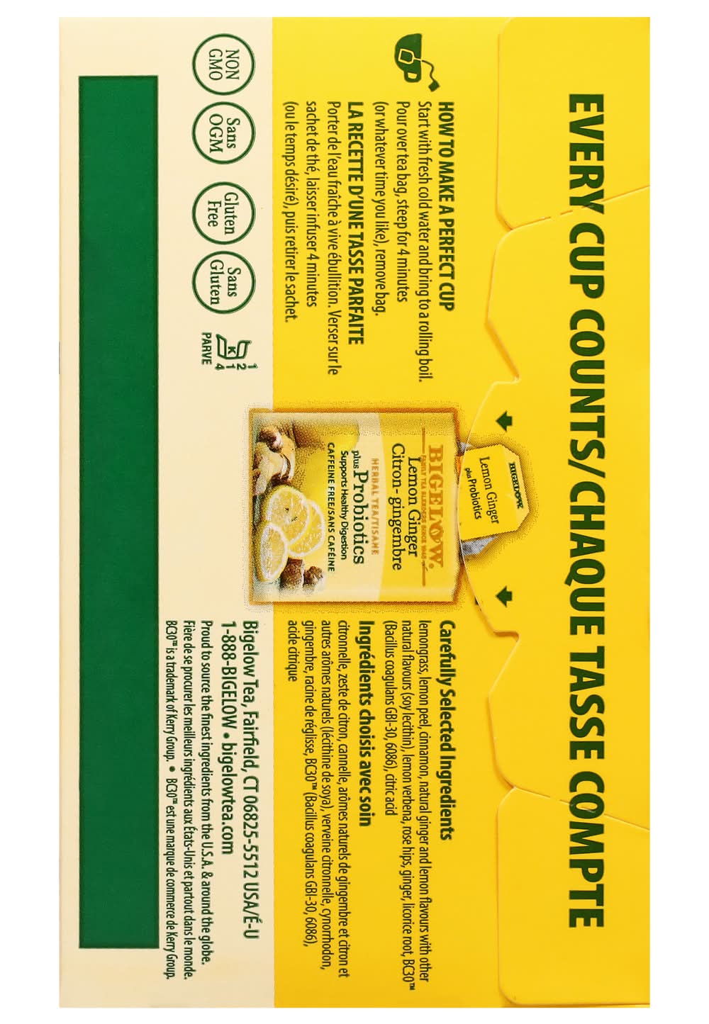 Bigelow Caffeine Free Lemon Ginger Herbal Tea Bags (1.31 oz, 18 ct)
