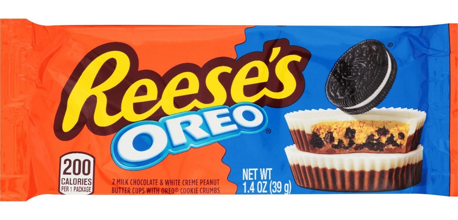 Contains one (1) 1.4-ounce bar of Reese's Milk Chocolate Peanut Butter Cups, shell emulating OREO's cream filling ad OREO crumbled cookies pieces.Treat yourself for a midday treat, movie night snack or after-dinner dessert.Try today. REESE’S and OREO® – together at last! REESE’S OREO® Cup combines REESE’S milk chocolate, a dual layer shell emulating OREO’S® cream filling with a white crème paste, REESE’S classic peanut butter and OREO® crumbled cookie wafers. Share with Friends.Try Now. Use Reese's Oreo candy for filling birthday gift bags and school lunch boxes or bridal and baby shower candy dishes. Treat Yourself. Try Today. Savor one Reese's Oreo at a time or share some with other peanut butter lovers during Valentine's Day, Christmas, Easter and Halloween celebrations. Share with family.Share with friends.