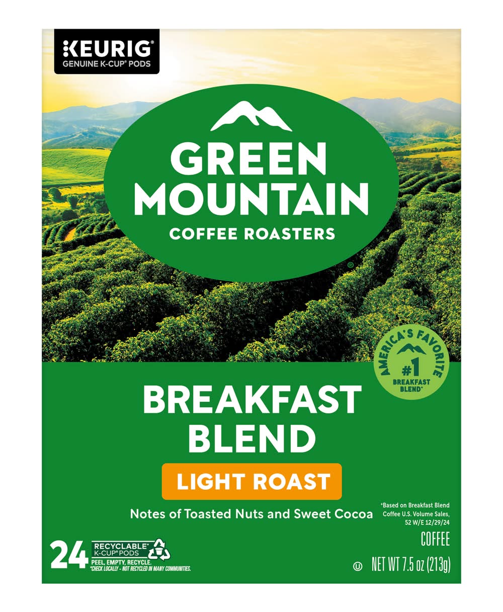 Green Mountain Coffee Roasters Breakfast Blend Light Roast K-Cup Pods (7.5 oz, 24 ct)