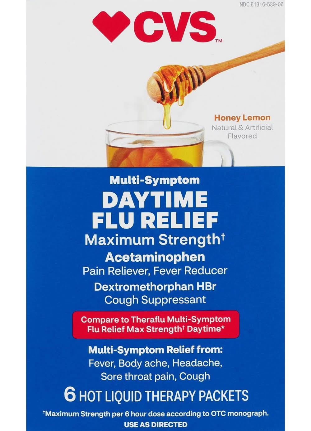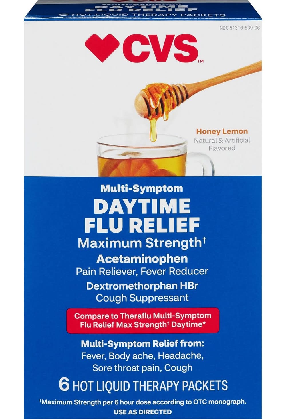 CVS Health Daily Time Flu Relief Hot Liquid Therapy Powder Packets, Honey Lemon (6 ct)