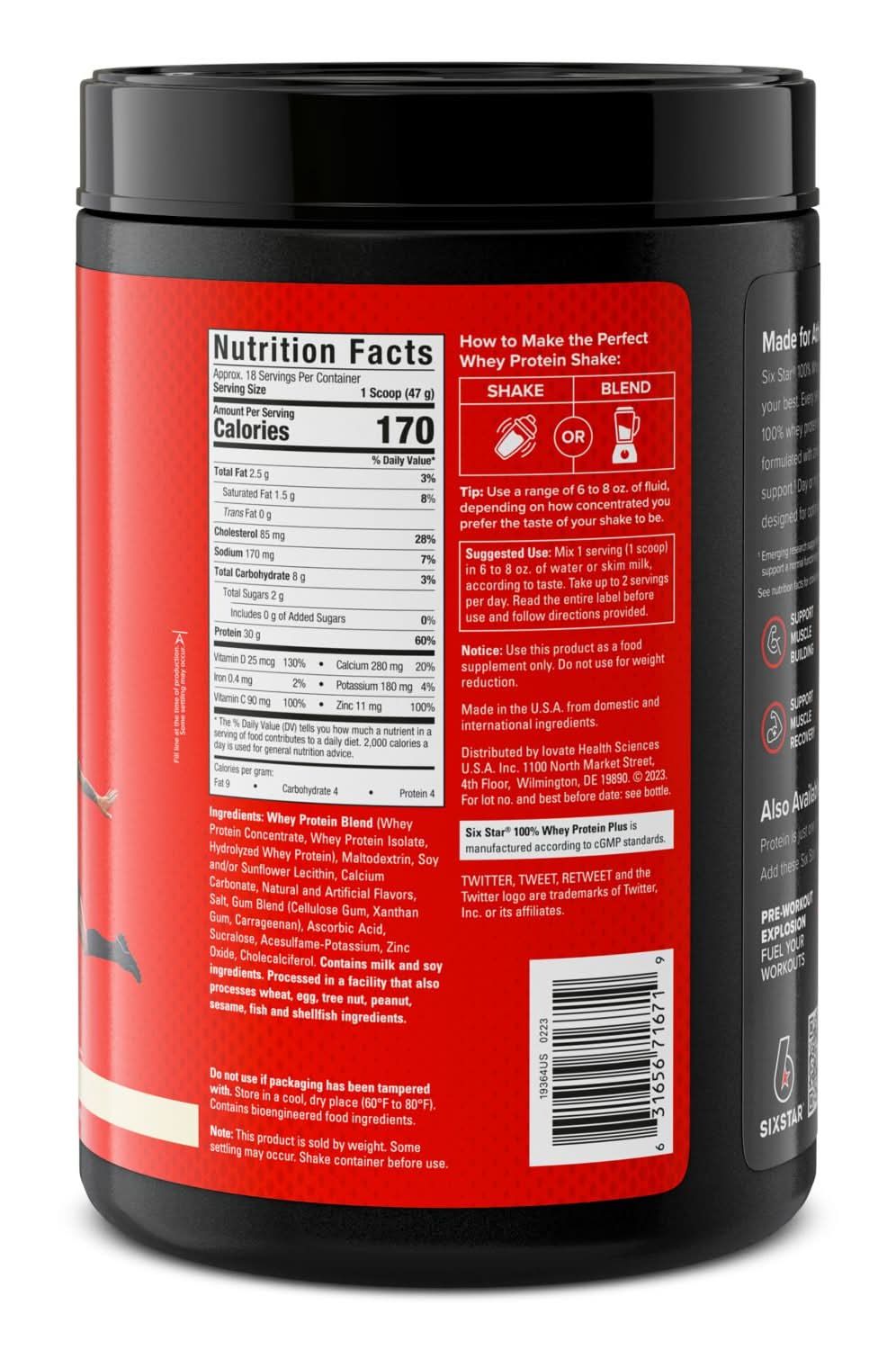 GREATNESS STARTS WITH SIX STAR 100% WHEY PROTEIN PLUS: Six Star 100% Whey Protein Plus delivers an incredible 30g of superior quality, pure whey protein (per scoop) to fuel training and support recovery. Plus, this premium formula is micro-filtered to reduce fat, lactose impurities, leaving you with only the best in quality nutrition. Six Star 100% Whey Protein Plus ranks in top tiers for formula bioavailability, purity, BCAAs and absorption. The pros trust Six Star 100% Whey Protein Plus for the superior muscle and strength-building nutrition they need to keep earning their greatness, and you can too. This potent formula features 100% whey protein in combination with fully-dosed servings of BCAAs and glutamine for amplified performance and recovery. UNCOMPROMISING PERFORMANCE: Six Star 100% Whey Protein Plus challenges the status quo with scientifically researched key ingredients that build more muscle and increase strength. TESTED TO BE TRUSTED: We require that all vitamins & supplements are third-party tested to help ensure they contain the listed dietary ingredients. To learn more, please visit cvs.com/tested-trusted. Provides all you need for muscle building Micro-filtered to reduce fat, lactose impurities, leaving you with only the best in quality nutrition Perfomance conscious!