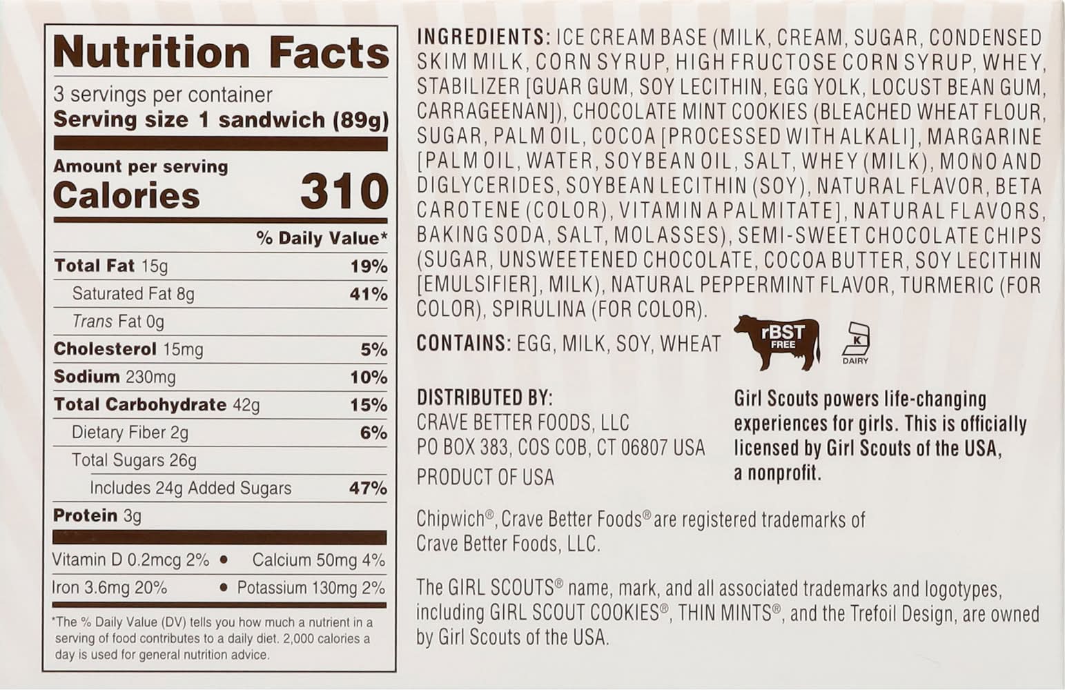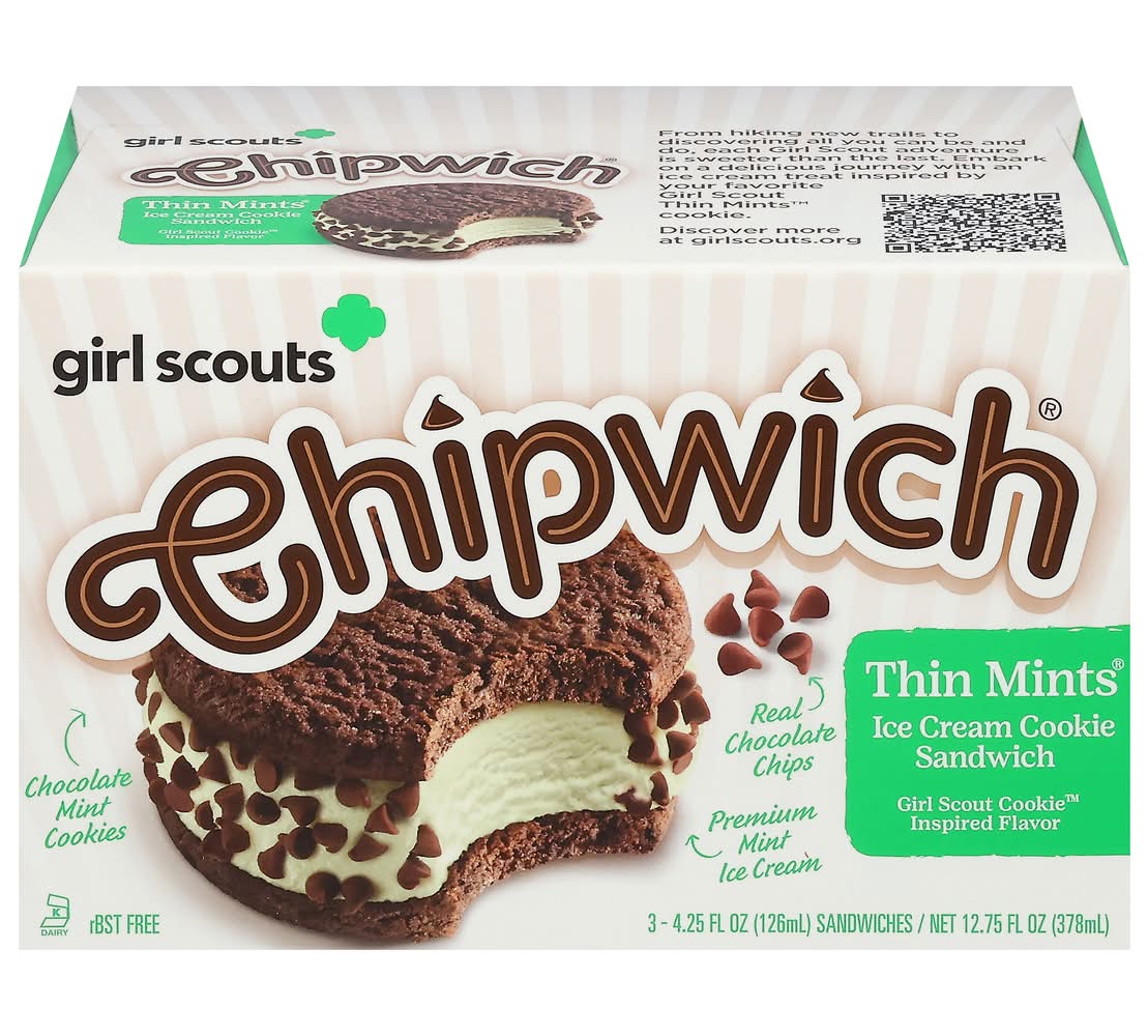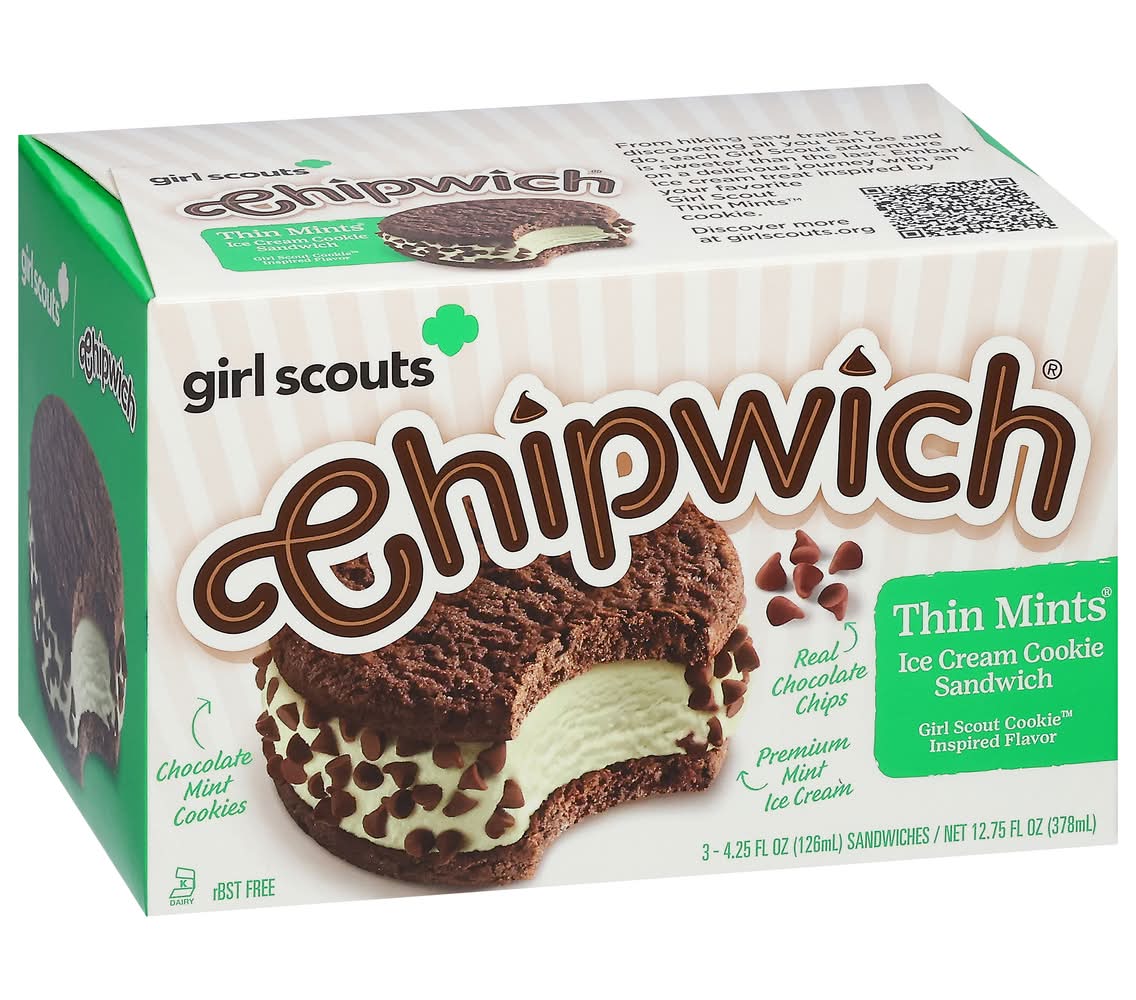 Chipwich Ice Cream Cookie Sandwich, Thin Mints (4.25 fl oz, 3 ct)