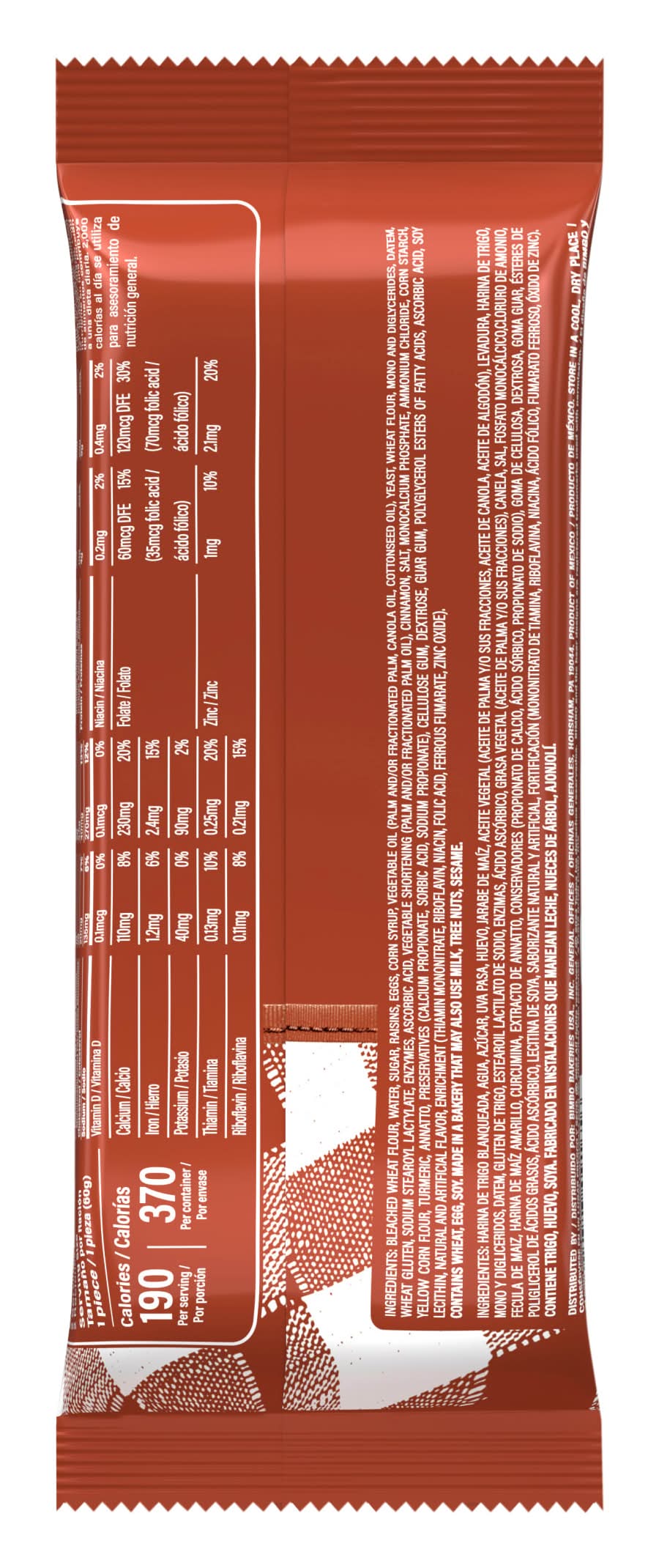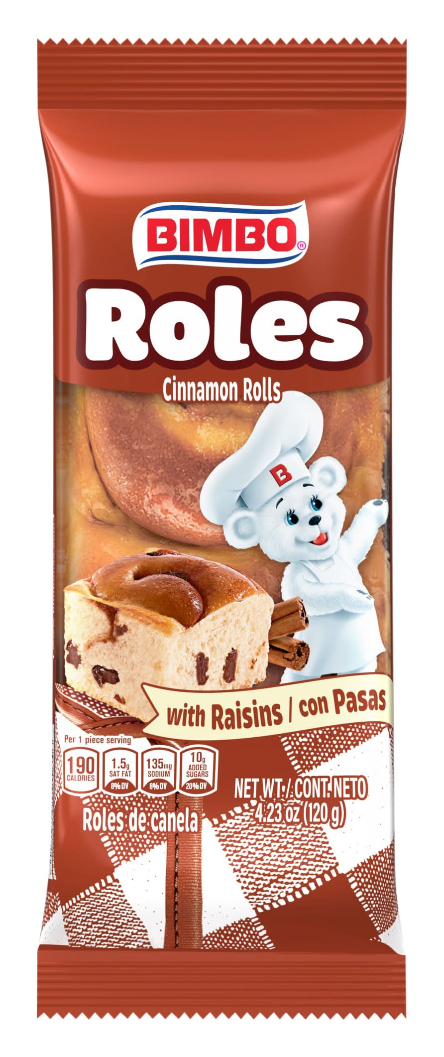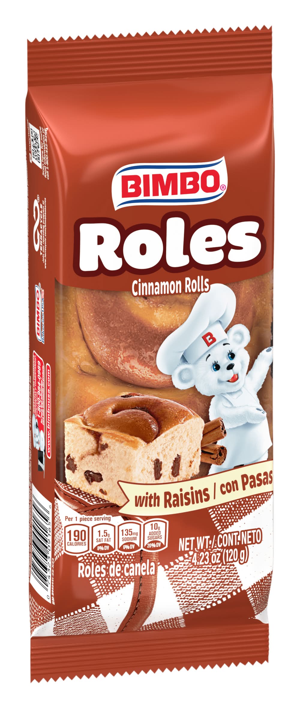Bimbo Roles De Canela Con Pasas are great for breakfast, merienda, and beyond. Soft and delicious, Roles De Canela Con Pasas are like traditional cinnamon rolls but packed with juicy raisins. They are baked with love, just like all Bimbo breads and pastries. Wrapped for freshness, Roles De Canela Con Pasas are great to pack in lunchboxes, to enjoy as an after-school snack, or to enjoy as a treat any time you need a sweet to brighten your day. Share one with a friend or savor the deliciously fresh-baked taste yourself. Bimbo has been bringing families together for four generations. A family owned business since 1945, Bimbo Bakeries USA is the leading baking company in America, bringing families quality baked goods they can share with the ones they love. Bimbo Bakeries USA, Inc, Horsham, PA, 19044