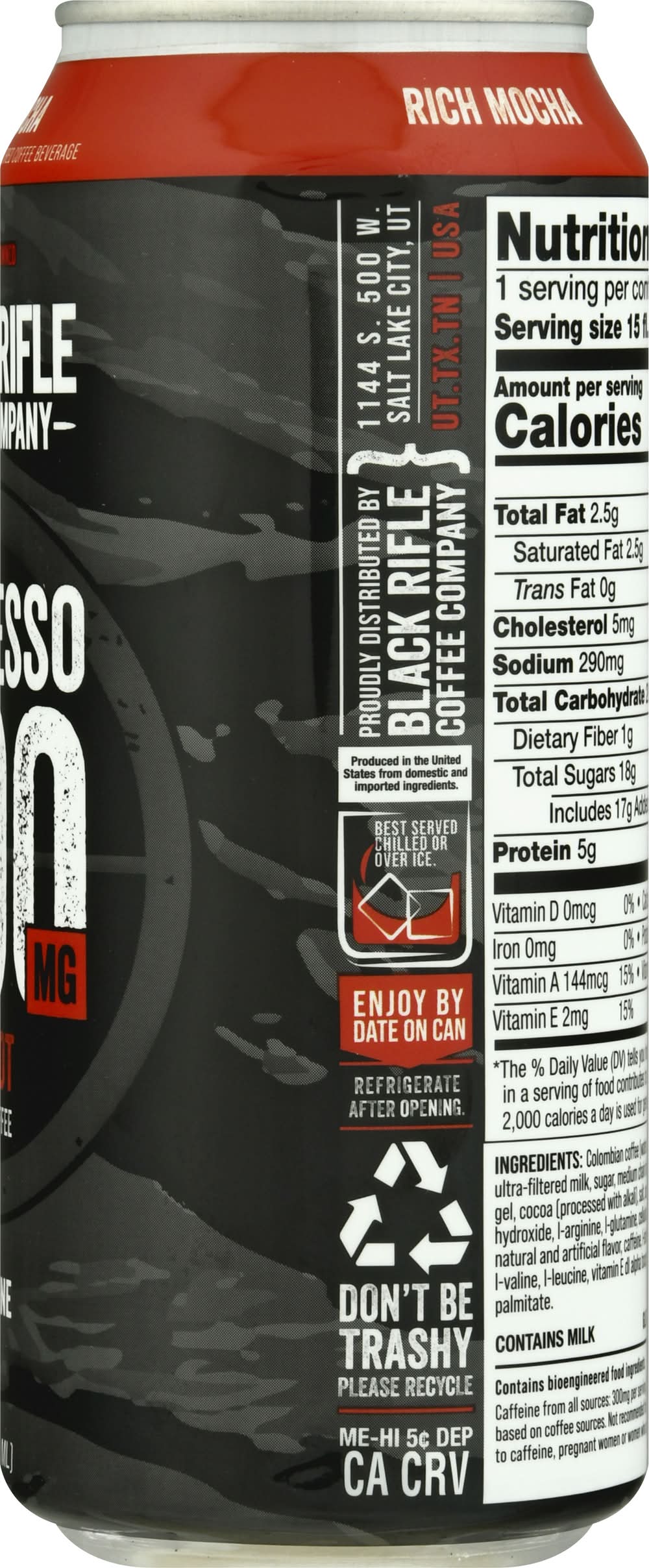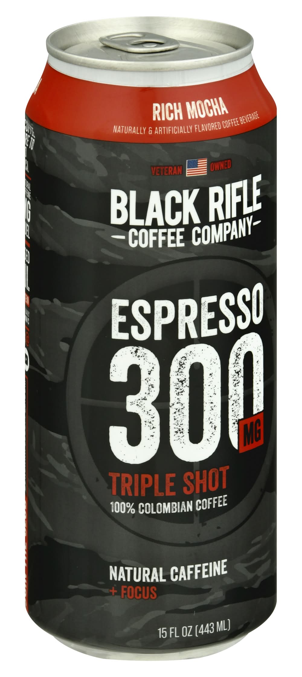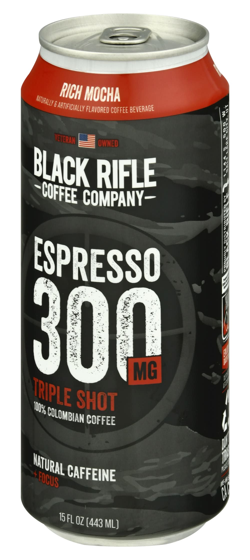 Black Rifle Coffee Company Espresso 300 Triple Shot 100% Colombian Coffee, Richa Mocha (15 fl oz)