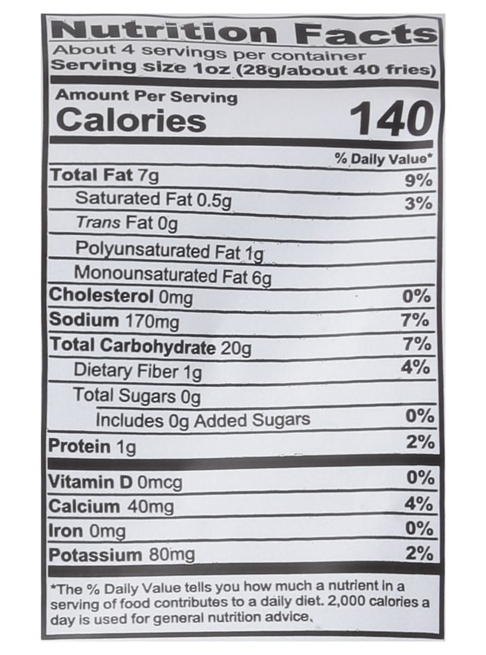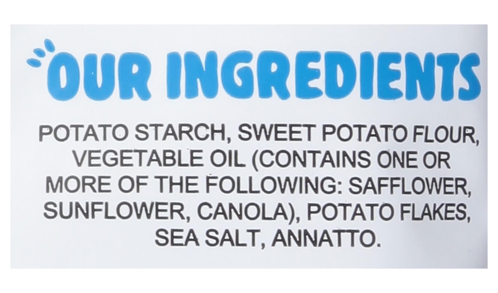 Ingredients: Our Ingredients: Potato Starch, Sweet Potato Flour, Vegetable Oil (Contains One or More of the Following: Safflower, Sunflower, Canola), Potato Flakes, Sea Salt, Annatto