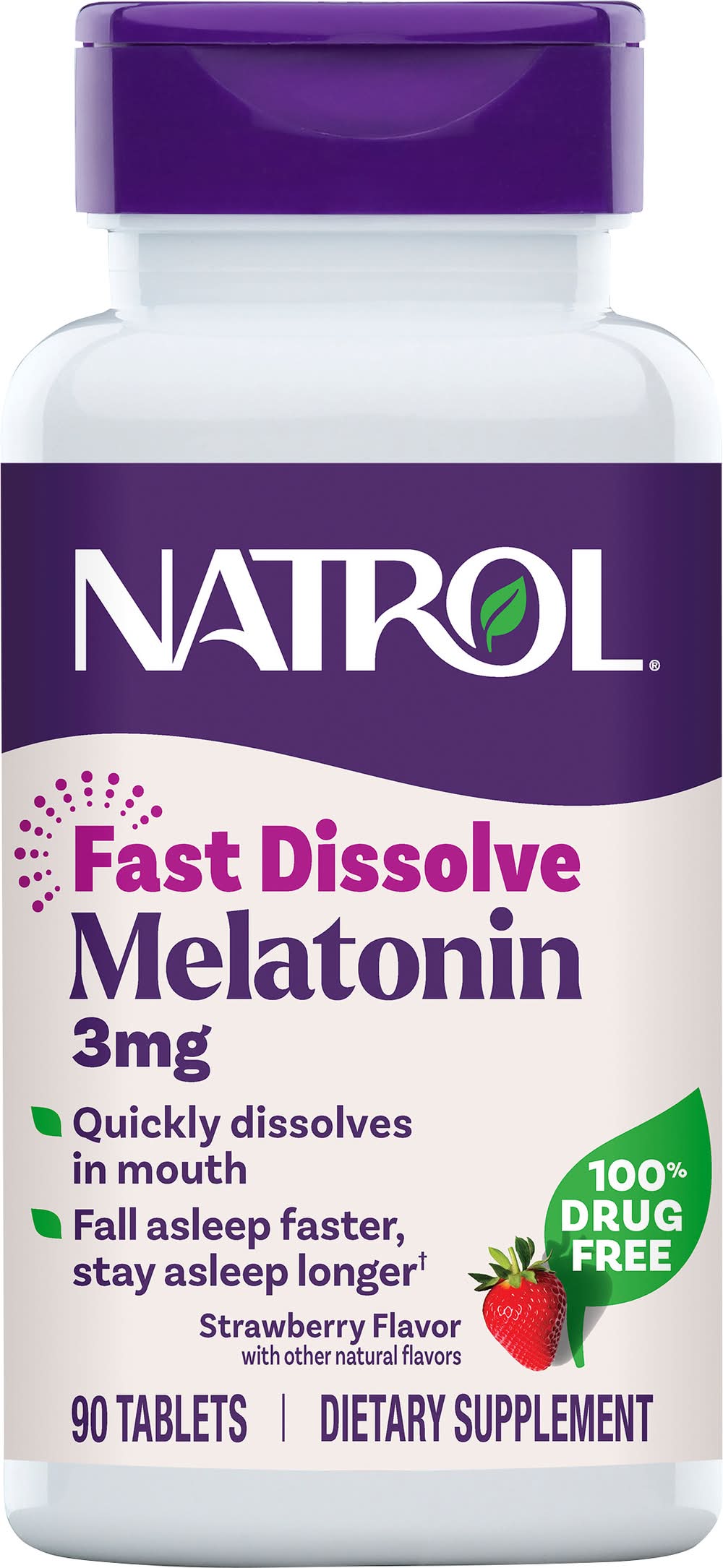 Natrol Fast Dissolve Melatonin Dietary Supplement For Sleep Support 3 mg, Strawberry (90 ct)