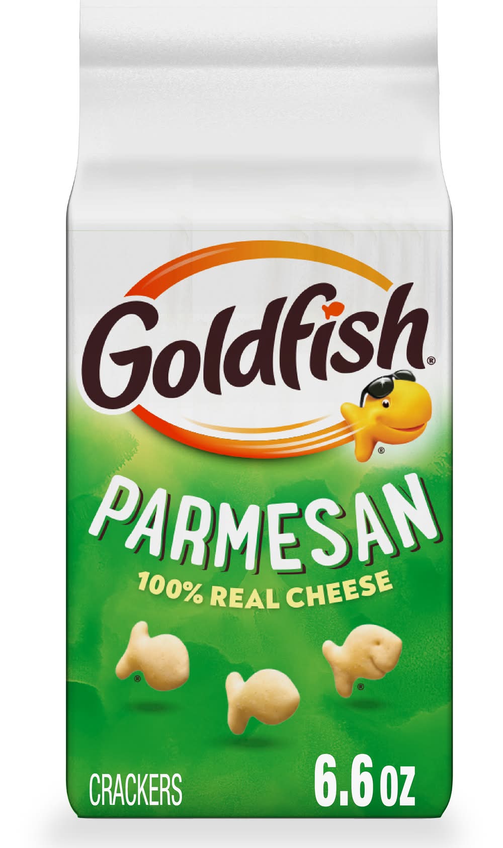 Say hello to Goldfish Parmesan Cheese Crackers, the snack that brings joy to every munch! These baked snack crackers are a delightful twist on the iconic Goldfish cracker, offering a burst of parmesan flavor that cheese lovers can't resist. Always baked with 100% real cheese, these cheesy crackers are a satisfying and flavorful snack. They're perfect for sharing during family game nights, adding fun to lunchboxes, or enjoying as a treat when friends come over. Each 6.6 oz bag is just the right size for sharing in any snacking moments. Crunchy and satisfying, grab Goldfish Parmesan Crackers whenever you're craving something delicious. • Flavor: Parmesan • Pepperidge Farm, Inc., Norwalk, CT, 06856 • Packaging: Reusable