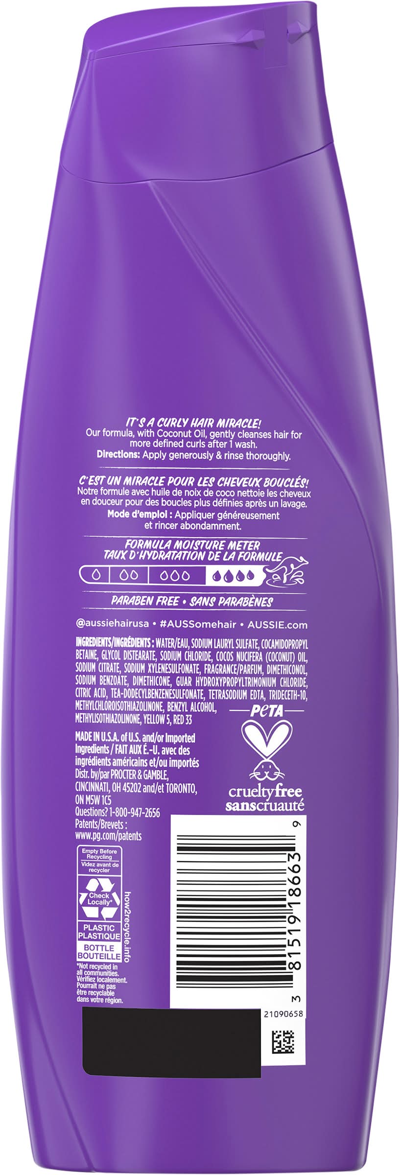 If you are on the lookout for a shampoo that has been specifically designed to keep your curly hair looking beautiful, full of volume, and turning heads all day long, then you won’t have to look any further than Aussie Miracle Curls Shampoo for Curly Hair! Paraben-free and made to gently clean every type of curl, Aussie’s Miracle Curls Shampoo brings enhanced hydration and deep nourishment to your curly hair strand-by-strand. Aussie Miracle Curls leaves your hair bouncy, vibrant, and full of radiant life. If you’re ready to experience a head full of more defined curls after just a single wash, simply work a generous palmful of this curly hair shampoo into your wet hair and indulge in the relaxing scent of citrus, florals, and musk. As your fingers work Aussie’s Miracle Curls Shampoo down from the scalp, the Miracle Curls shampoo works to nourish your hair to its core, locking in moisture for a fresh look Then, simply rinse, dry, and take in the glory of your hair’s beautiful, frizz-free, radiant shine and jubilant curls that bounce playfully as they turn heads. Pair with Aussie Miracle Curls Conditioner for an even deeper level of hydration. Aussie is a PETA certified cruelty-free brand. PERFECT FOR curly hair GENTLY CLEANS and leaves hair full of life MADE WITH coconut oil ENHANCED DEFINITION of curls FRAGRANCE of citrus, florals, and musk PARABEN FREE • Procter & Gamble, CincinnatiOH45202 • Packaging: Reusable