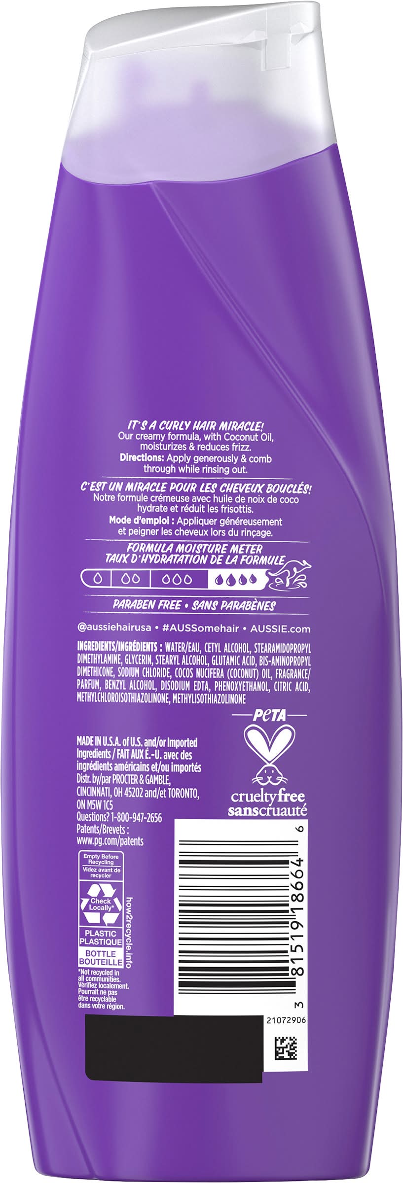 It's a curly hair miracle Our creamy formula, with coconut oil, moisturizes & reduces frizz. • Procter & Gamble, Cincinnati,OH. • Packaging: Reusable