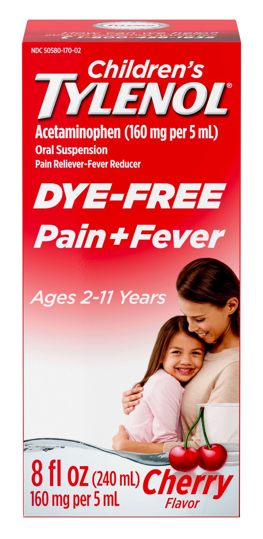 Tylenol Children's Pain + Fever Medicine Dye-Free Cherry is an oral suspension formulated to relieve pain and reduce fever in children ages 2 to 11 years. It is free from dyes, alcohol, ibuprofen, aspirin, parabens, and high fructose corn syrup, offering a cherry-flavored remedy for young ones in need of relief.